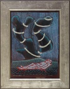 Der Ausstellungstitel „Harmonie der Gegensätze“ deutet es an: hier geht es um eine friedliche Koexistenz zweier Künstler, beinahe um eine Freundschaft der Gegenpole. Die Ausstellung in den beeindruckenden, endlich wieder zugänglichen Räumen der Kunsthalle Brennabor gibt einen konzentrierten Überblick über das Werk von zwei auf den ersten Blick ganz unterschiedlich wirkenden Künstlern: Cornelius Perino und Saint James, der durch den legendären Berliner Galeristen Michael J. Wewerka vertreten wird. Ein Wagnis und ein Gewinn auf der Augenhöhe, denn Wewerka vertritt nicht nur Saint James, sondern ist auch langjähriger Förderer und Freund des Bild- und Performancekünstlers Perino. Kuratiert wurde die Ausstellung von Christian Kneisel, von 2001 bis 2014 Intendant des Brandenburger Theaters, der in der Kunsthalle Brennabor seit 2004 über siebzig Ausstellungen verantwortet und organisiert hat.
