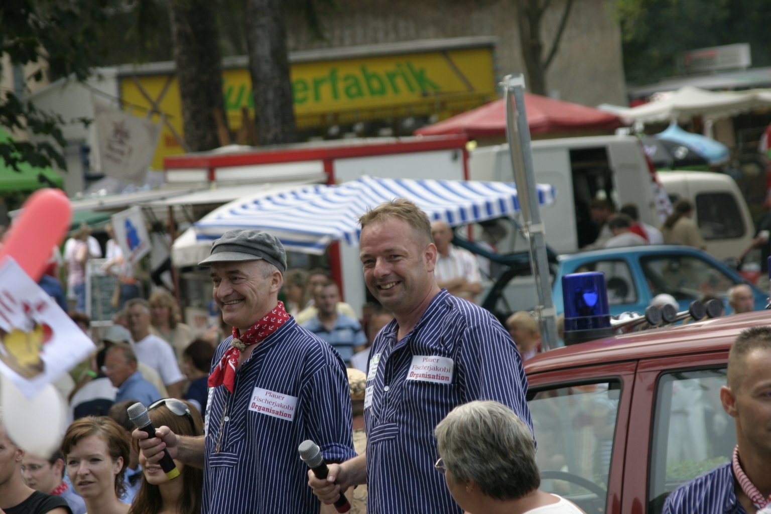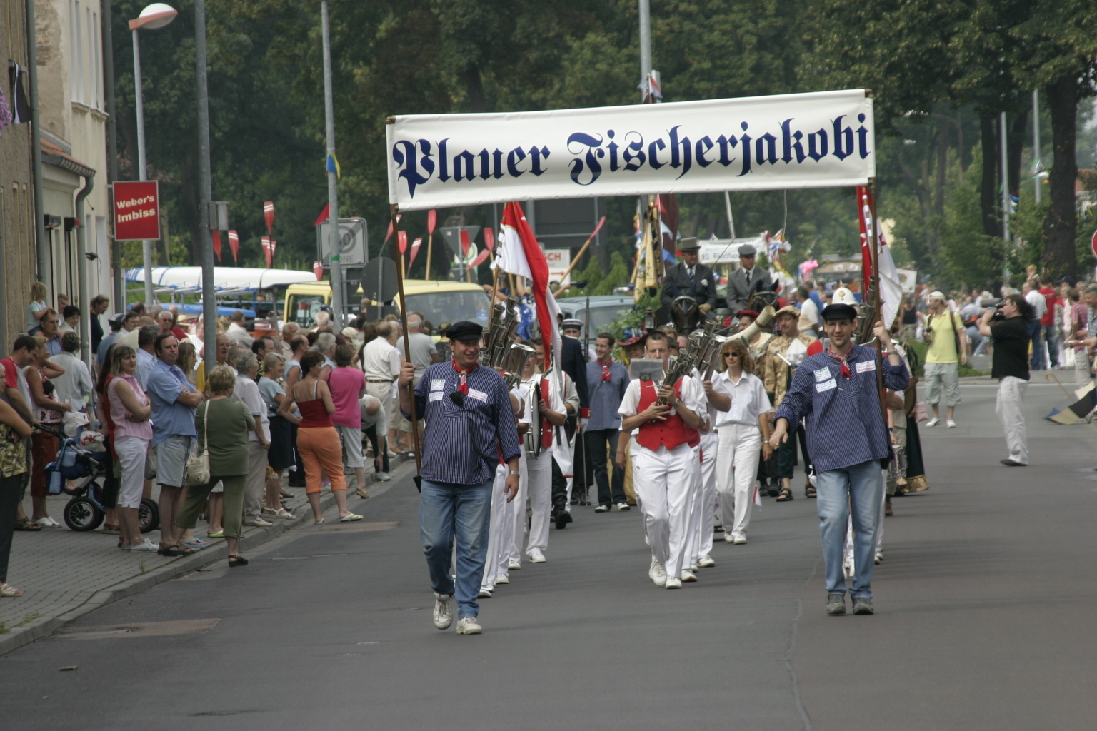 „Oftmals wird uns Fischern die Frage gestellt: ,Wie oft wurde dieses schöne Fest schon gefeiert?´ Wir wissen es nicht, die Nachweise gehen bis in das 14. Jahrhundert zurück. Gefeiert wurde jedes Jahr mal mit Pauken und Trompeten, mal mehr still. Meist jedoch mit einem Festgottesdienst und der Prozession auf der Havel mit anschließendem Vergnügen. Dem Schutzheiligen der Plauer Fischer, Jakobus dem Älteren, wird dabei gehuldigt. Ab 1997 entwickelte sich ein 3-tägiges Volksfest, dessen ‘Anstifterin’ Lieselotte Martius gemeinsam mit den Fischern war. lm Mittelpunkt steht damals wie heute die Prozession der Plauer Fischer mit ihren Familien und dem Pfarrer beziehungsweise der Pfarrerin auf der Havel. Die finanziellen Förderungen durch die Stadt Brandenburg an der Havel sowie das Land Brandenburg sowie die Unterstützung von Vereinen und Privatpersonen sind Basis dafür, dieses Fest mit den vielen Programmpunkten durchzuführen – alles bei freiem Eintritt! Dafür bedanken wir uns sehr herzlich.“