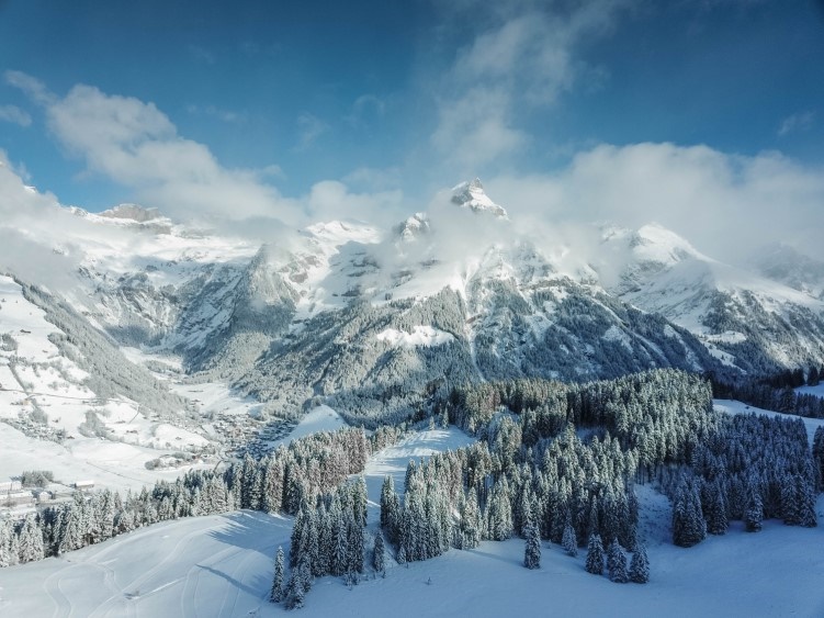 Zu sehen werden Bilder des Schweizer Fotografen Jan Arnold mit Momentaufnahmen zwischen Schnee, Bergen und Landschaften.