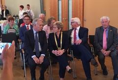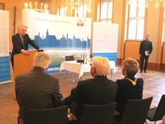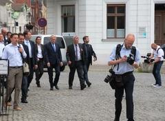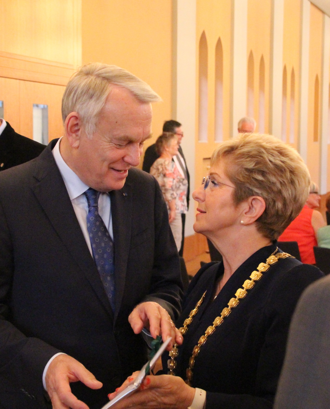 Oberbürgermeisterin Dietlind Tiemann und SVV-Vorsitzender Walter Paaschen begrüßten die beiden Chefdiplomaten am Altstädtischen Rathaus, wo sich beide im Beisein von Mitgliedern und Fraktionsvorsitzenden der Stadtverordnetenversammlung in das Goldene Buch der Stadt eintrugen.