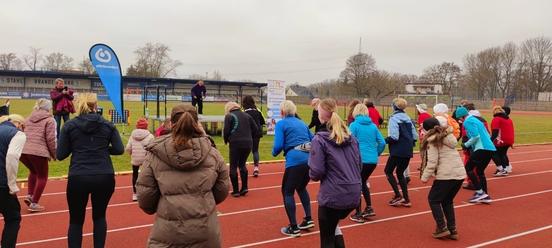 Um 10 Uhr gingen zahlreiche Teilnehmerinnen und Teilnehmer im Stadion am Quenz an den Start, um gemeinsam zu laufen, walken oder spazieren zu gehen. Trotz kalter Temperaturen ließen sich viele Frauen, Männer und Kinder nicht davon abhalten, an der Veranstaltung teilzunehmen. Die Gleichstellungsbeauftragte Jeannette Horn begrüßte die Anwesenden während Lilly Charlet das „Warmup“ übernahm und den Laufwilligen einheizte.