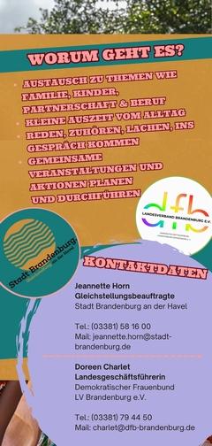 Die Gleichstellungsbeauftragte der Stadt Brandenburg an der Havel, Jeannette Horn, und die Geschäftsführerin des Demokratischen Frauenbundes Landesverband Brandenburg e. V., Doreen Charlet, laden herzlich zur Eröffnung des neuen Frauentreffs ein.
