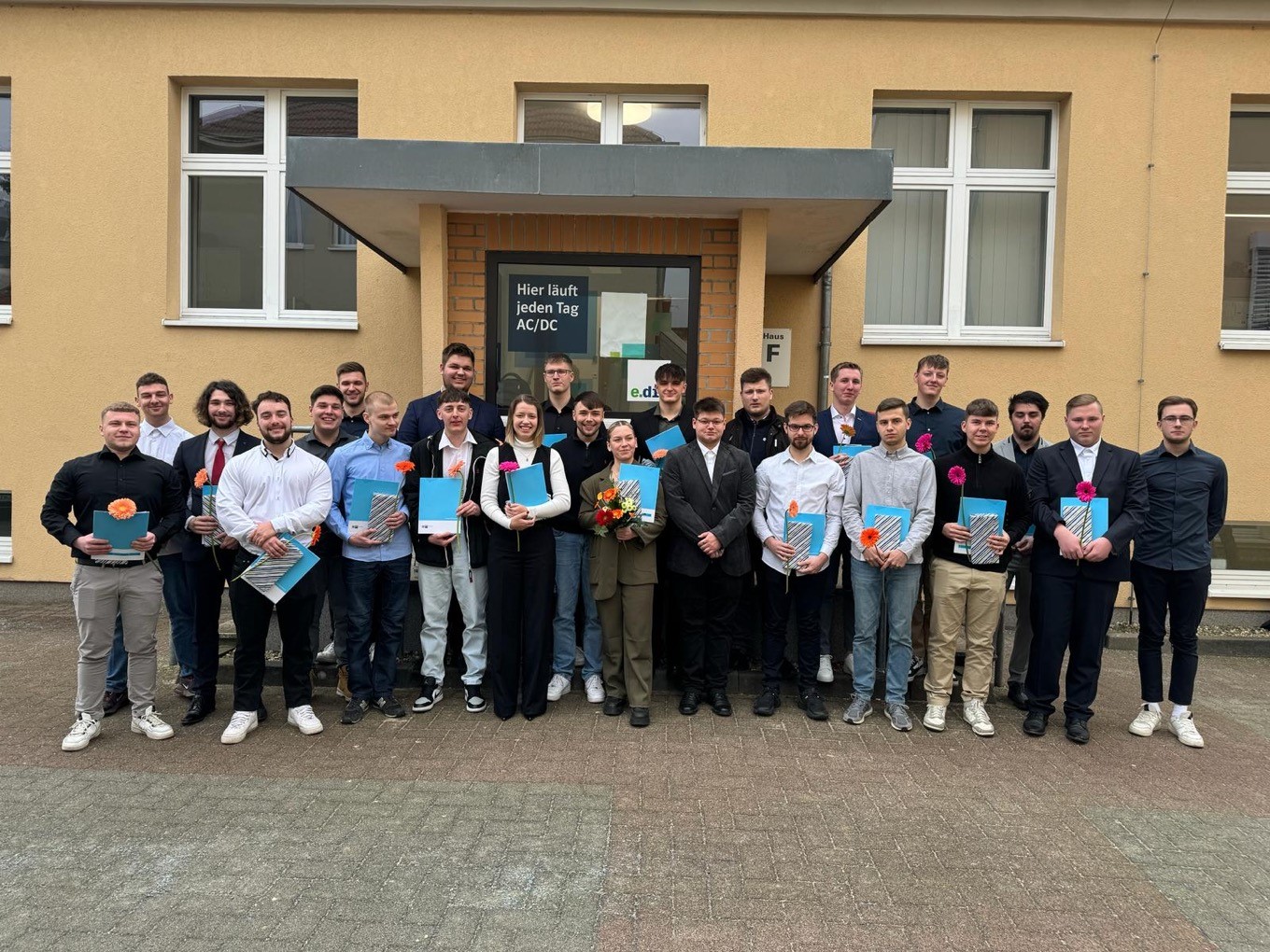 42 junge Menschen aus der Region können sich ab sofort Elektroniker bzw. Elektronikerin für Betriebstechnik nennen und somit von nun an die Energiewende in Brandenburg und Mecklenburg-Vorpommern aktiv mitgestalten. Am 26. Januar 2024 erhielten sie ihre Abschlusszeugnisse an den E.DIS-Bildungszentren in Brandenburg an der Havel und Rostock.