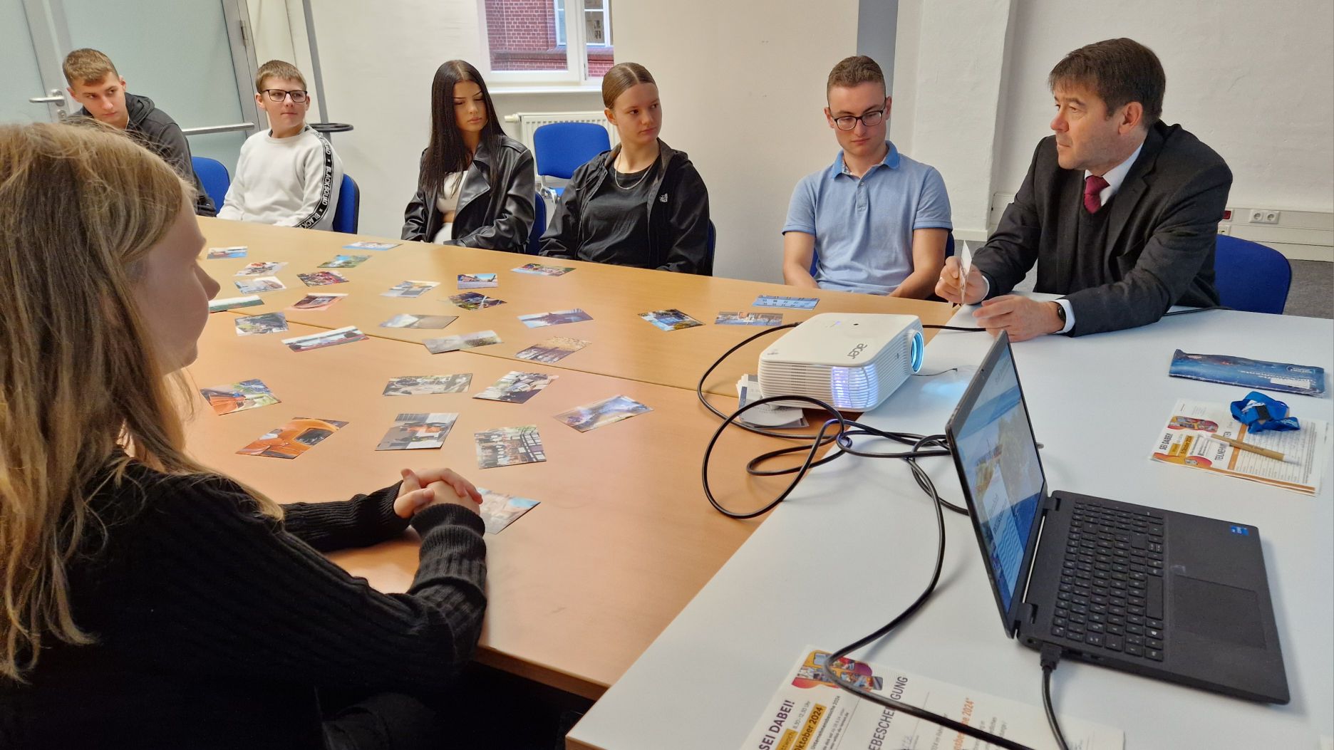 Der Theorie folgten direkt Einblicke in die Praxis, in dem auf dem Hof der Verwaltung in der Klosterstraße je ein Vermessungstechniker, Straßenwärter und Feuerwehrmann von ihrer Arbeit erzählten und Equipment zeigten. Hilfreich war auch die Mitwirkung zweier Auszubildenden, die begeistert von ihren Praxiserfahrungen erzählten.