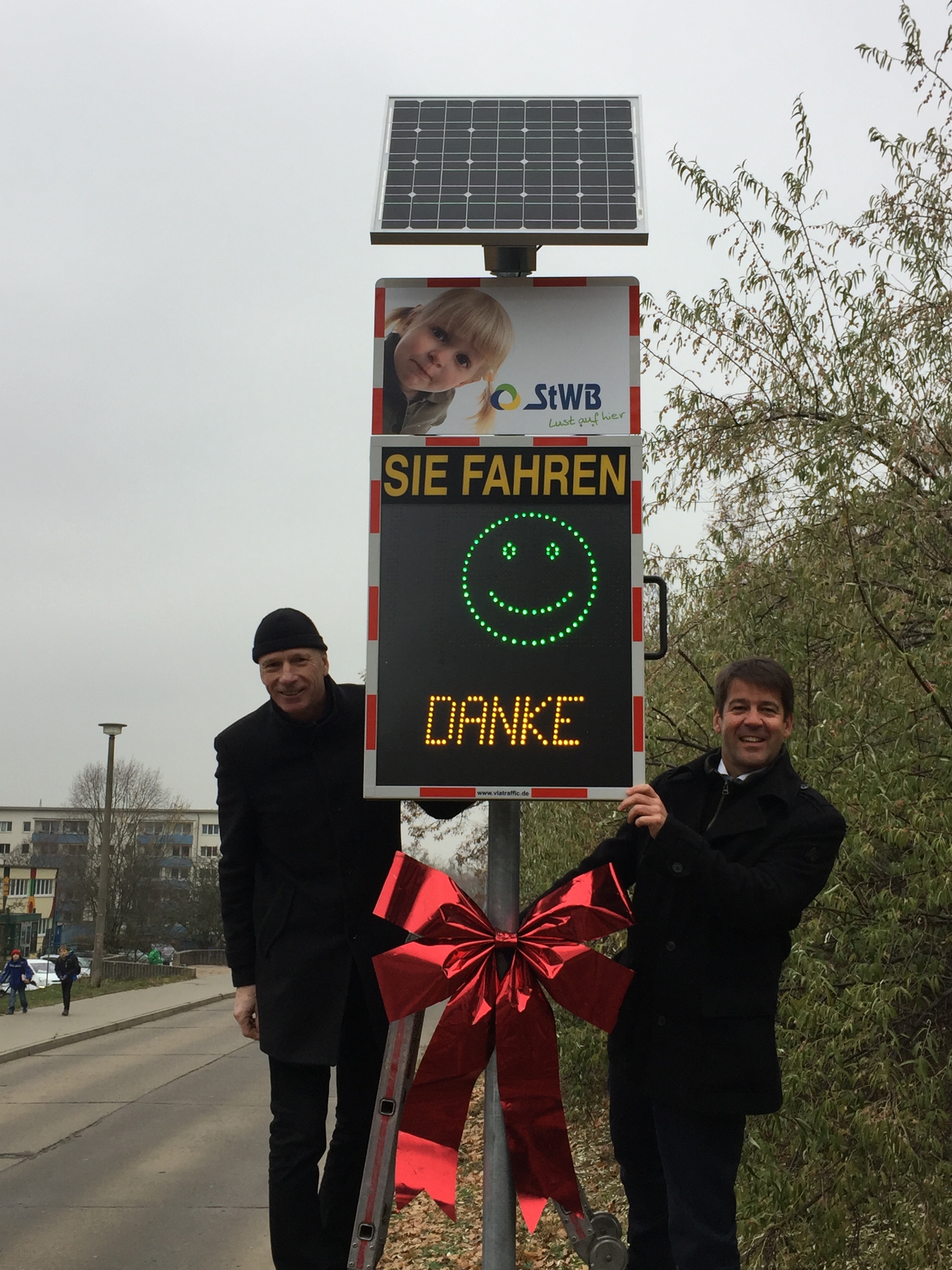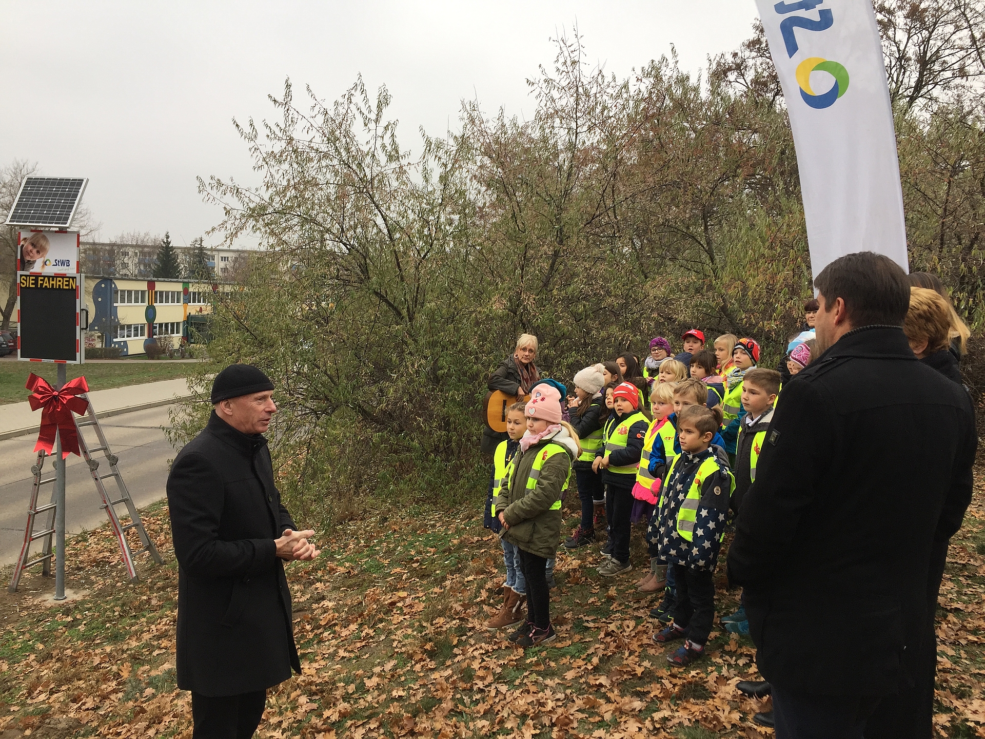 Am Donnerstag, 22.11.2018, nahmen Oberbürgermeister Steffen Scheller und Stadtwerkegeschäftsführer Uwe Müller das neu installierte Dialogdisplay in der Sprengelstraße in Betrieb.