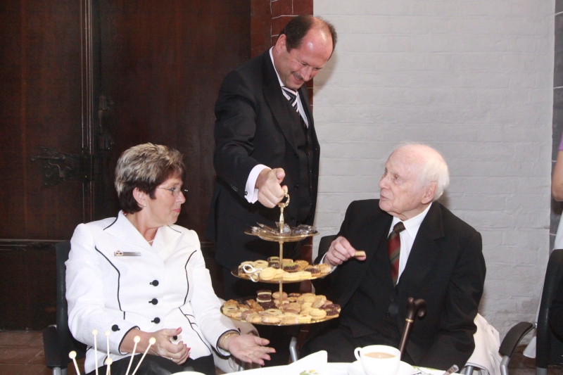 Neben den Glückwünschen ging auch ein Karton auf Reisen zum Wohnsitz von LORIOT am Starnberger See. Darin befindet sich die gleiche Auswahl an Tee, Konfekt und Gebäck, die der Ehrenbürger auch bei seinem Besuch vor wenigen Wochen in der Gotthardtkirche gereicht bekam und von der er sehr angetan war. Sicher wird sich der größte Sohn der Havelstadt beim Genießen der Köstlichkeiten an die schönen Stunden in Brandenburg an der Havel erinnern.