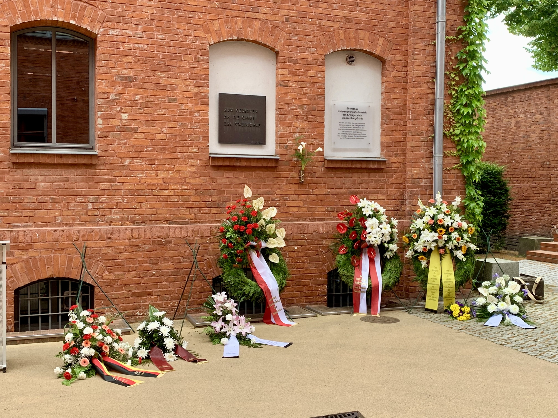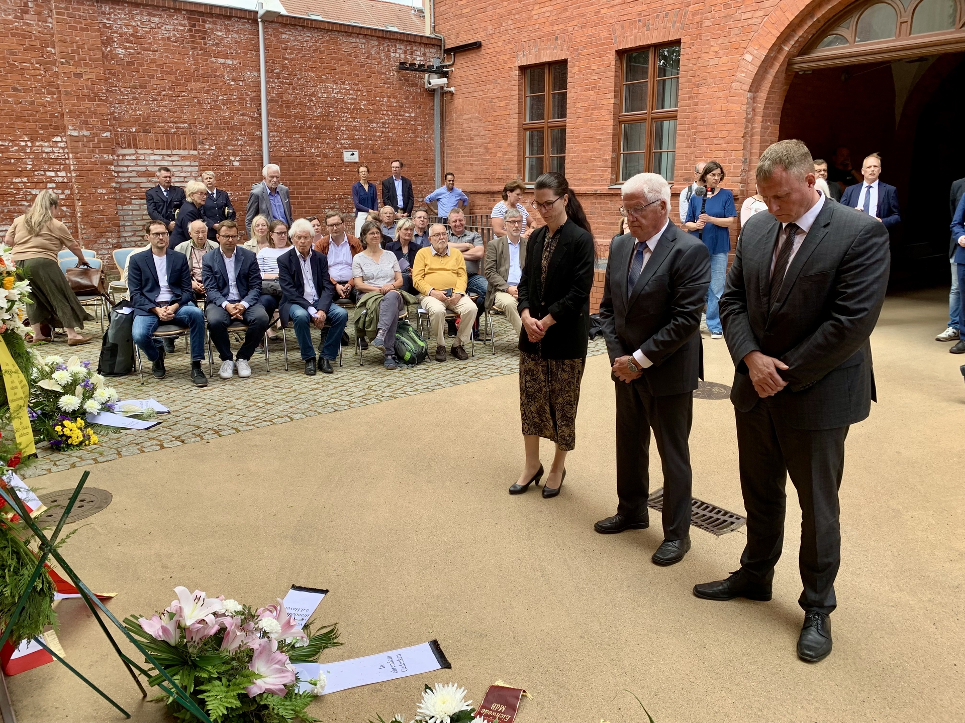 An der Veranstaltung des Landes Brandenburg nahmen Dr. Dietmar Woidke, Ministerpräsident des Landes Brandenburg, und Prof. Dr. Ulrike Liedtke, Präsidentin des Landtages Brandenburg sowie Dr. Andreas Behm, Generalstaatsanwalt des Landes Brandenburg, teil. In Vertretung des Oberbürgermeisters waren die Beigeordneten Alexandra Adel und Thomas Barz im Innenhof der Generalstaatsanwaltschaft vor Ort.