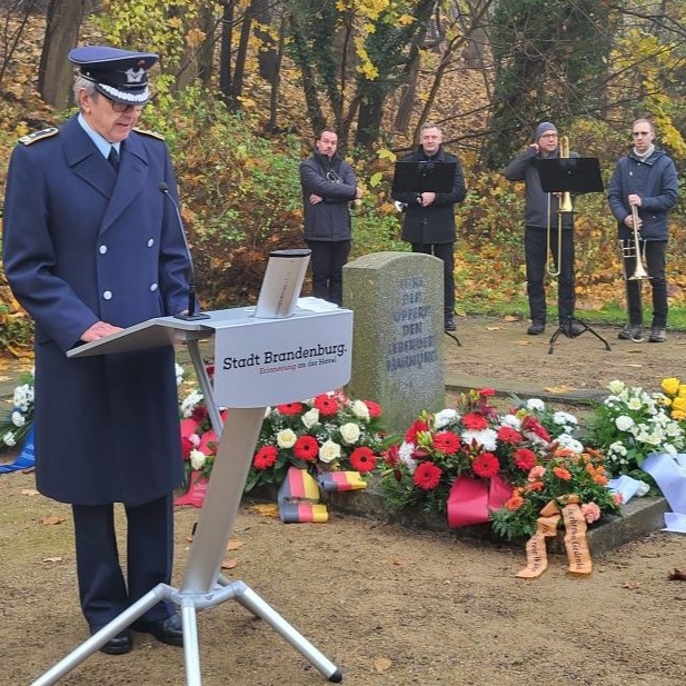 Der Oberstleutnant der Reserve, Reiner Heublein vom Kreisverbindungskommando Brandenburg, betonte, dass an einem Tag wie diesem die Verwirrungen der deutschen Geschichte besonders sichtbar werden. Deutschland habe nach dem Zweiten Weltkrieg einen langen und schmerzhaften Lernprozess durchlaufen. Die Anerkennung der eigenen Vergangenheit sei dabei zu einem zentralen Bestandteil des gesellschaftlichen Selbstverständnisses geworden.
