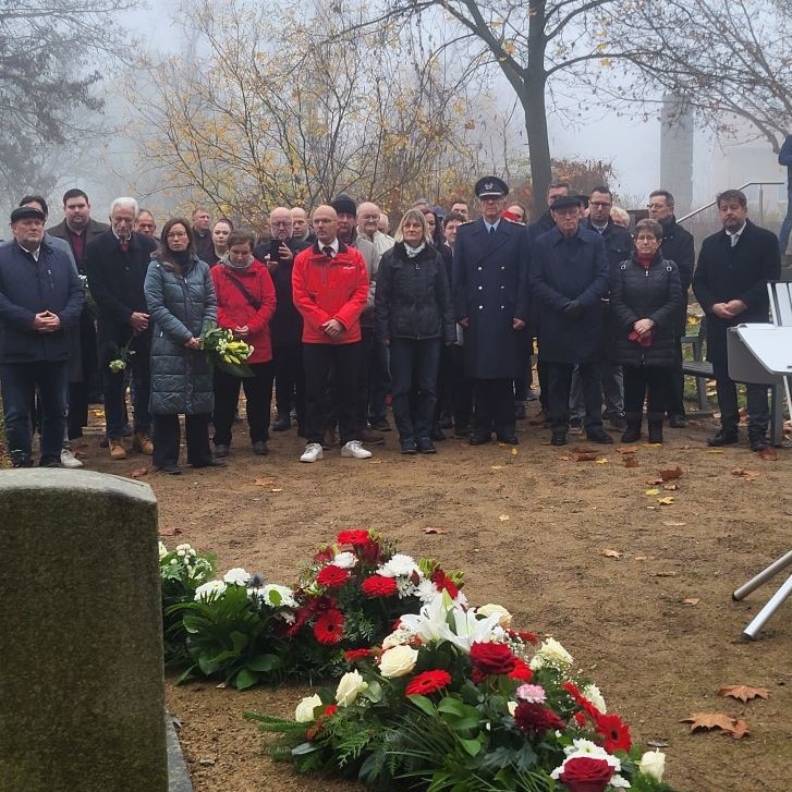 In der Kriegsgräberstätte am Marienberg kamen am Volkstrauertag Vertreter aus Politik, Verwaltung und Wirtschaft zusammen. Sie legten Kränze und Blumengebinde zum Gedenken an die Kriegstoten nieder. Im Anschluss sammelte der Volksbund für die Kriegsgräberfürsorge.