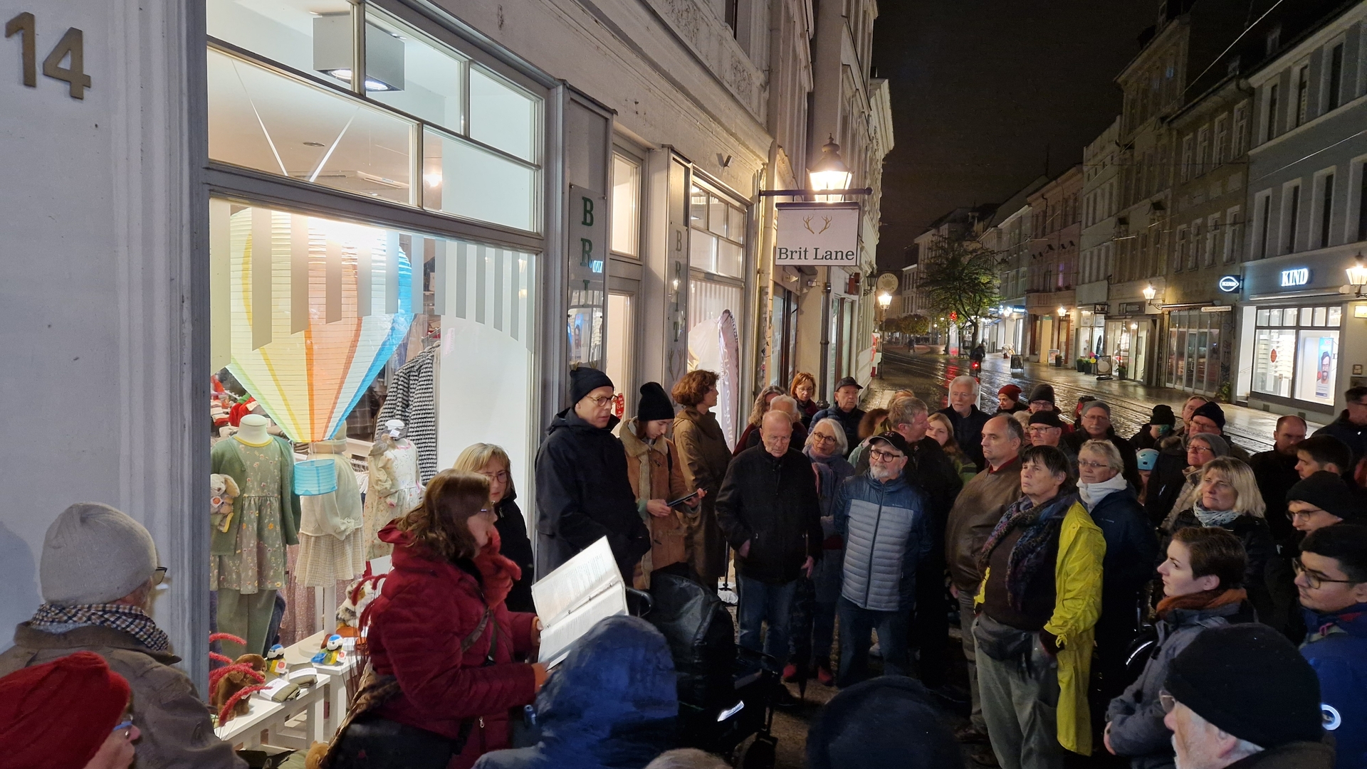 Dem Gedenken war am Dienstag, 5. November 2024, ein Memory-Walk vorausgegangen, der sich thematisch mit den auf der Dominsel verlegten Stolpersteinen für die jüdische Familie Lesser beschäftigte.