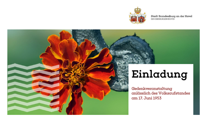 Aus diesem Anlass laden Eugen Larres, Leitender Oberstaatsanwalt der Generalstaatsanwaltschaft, Oberbürgermeister Steffen Scheller und Walter Paaschen, Vorsitzender der Stadtverordnetenversammlung, alle Brandenburgerinnen und Brandenburger zu einer Gedenkveranstaltung am Montag, dem 17. Juni 2018, um 12:00 Uhr in den Innenhof der Generalstaatsanwaltschaft, Steinstraße 61 in 14776 Brandenburg an der Havel ein.