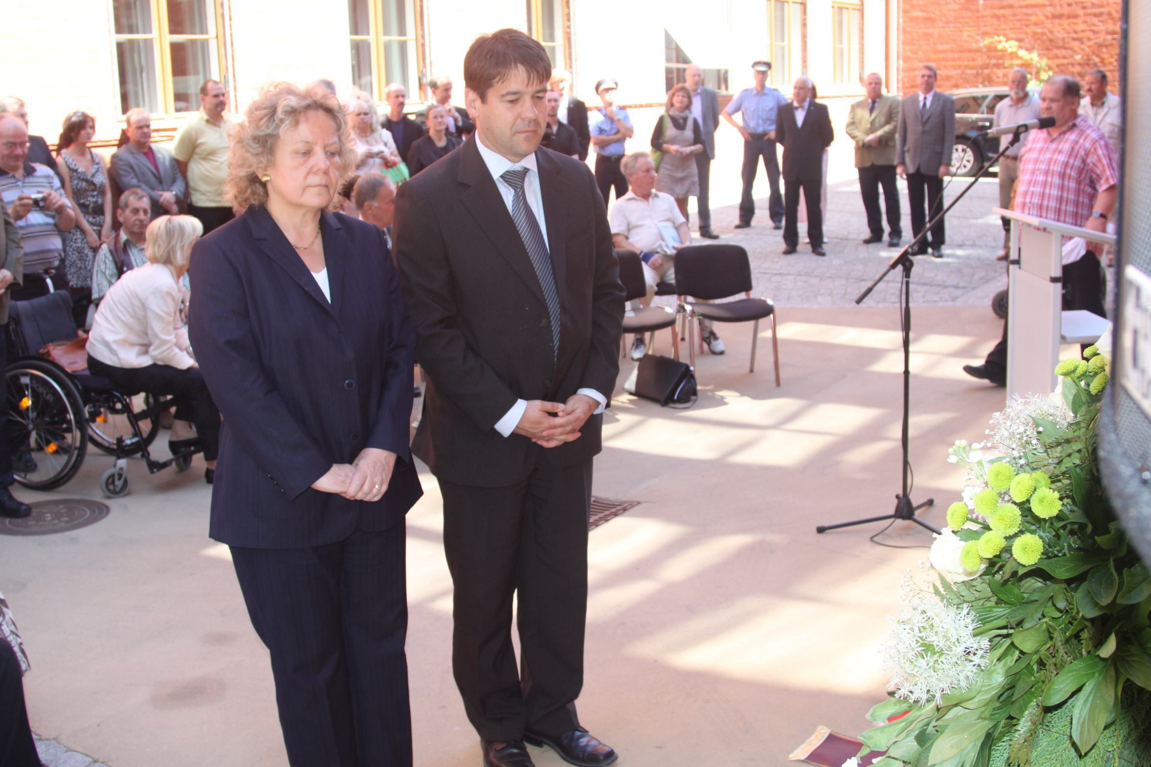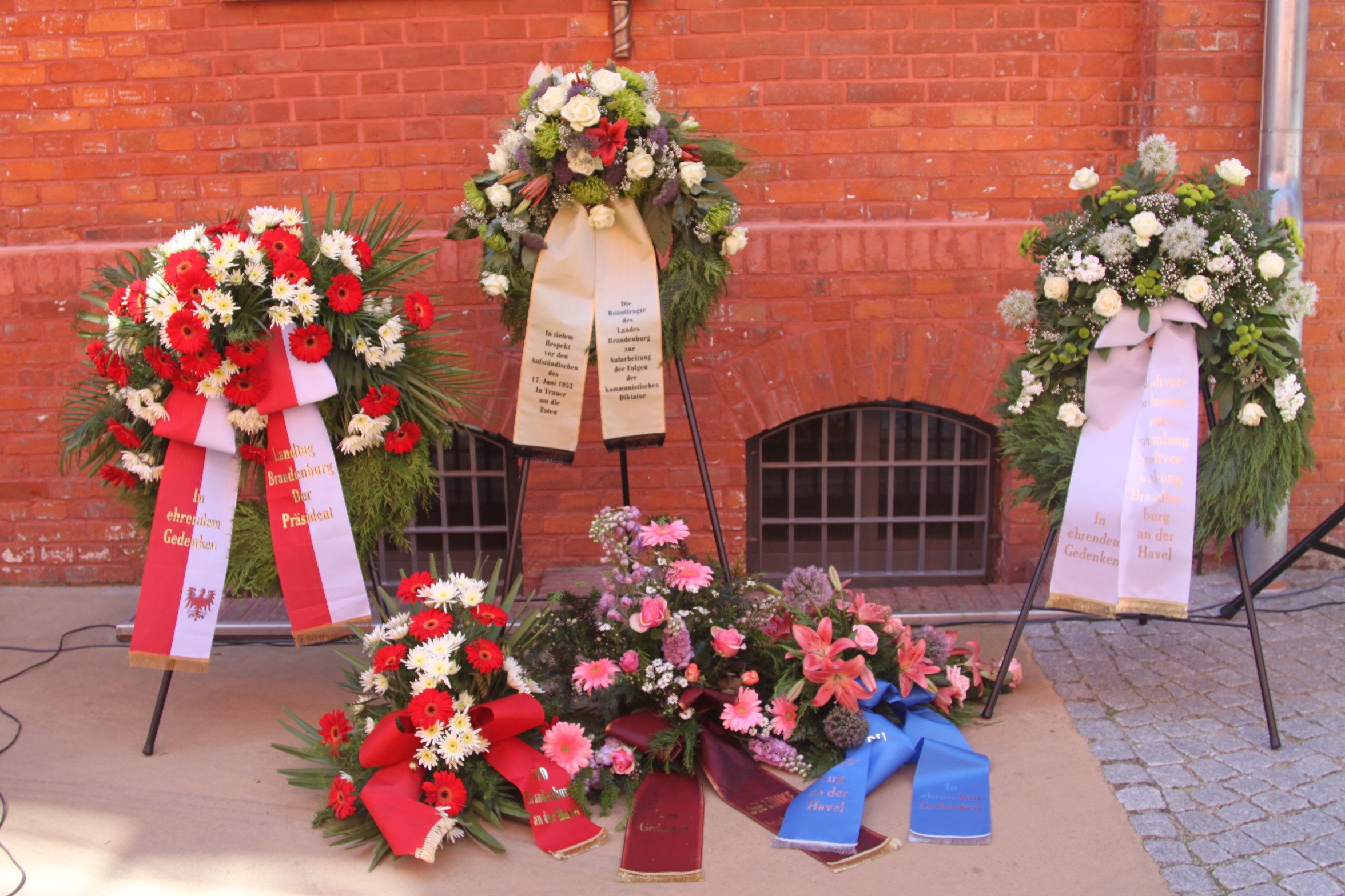 Heute wurden zum Gedenken an die Opfer des Volksaufstandes vom 17. Juni 1953 auf dem Innenhof der Generalstaatsanwaltschaft Kränze niedergelegt. Generalstaatsanwalt Dr. Erardo Rautenberg begrüßte die Gäste. Die Vorsitzende der Stadtverordnetenversammlung der Stadt Brandenburg an der Havel Dr. Lieselotte Martius und Stasi – Beauftragte Ulrike Poppe hielten in ihren Reden die Erinnerungen an die Ereignisse, die auf den Tag genau vor 57 Jahren passierten, wach.