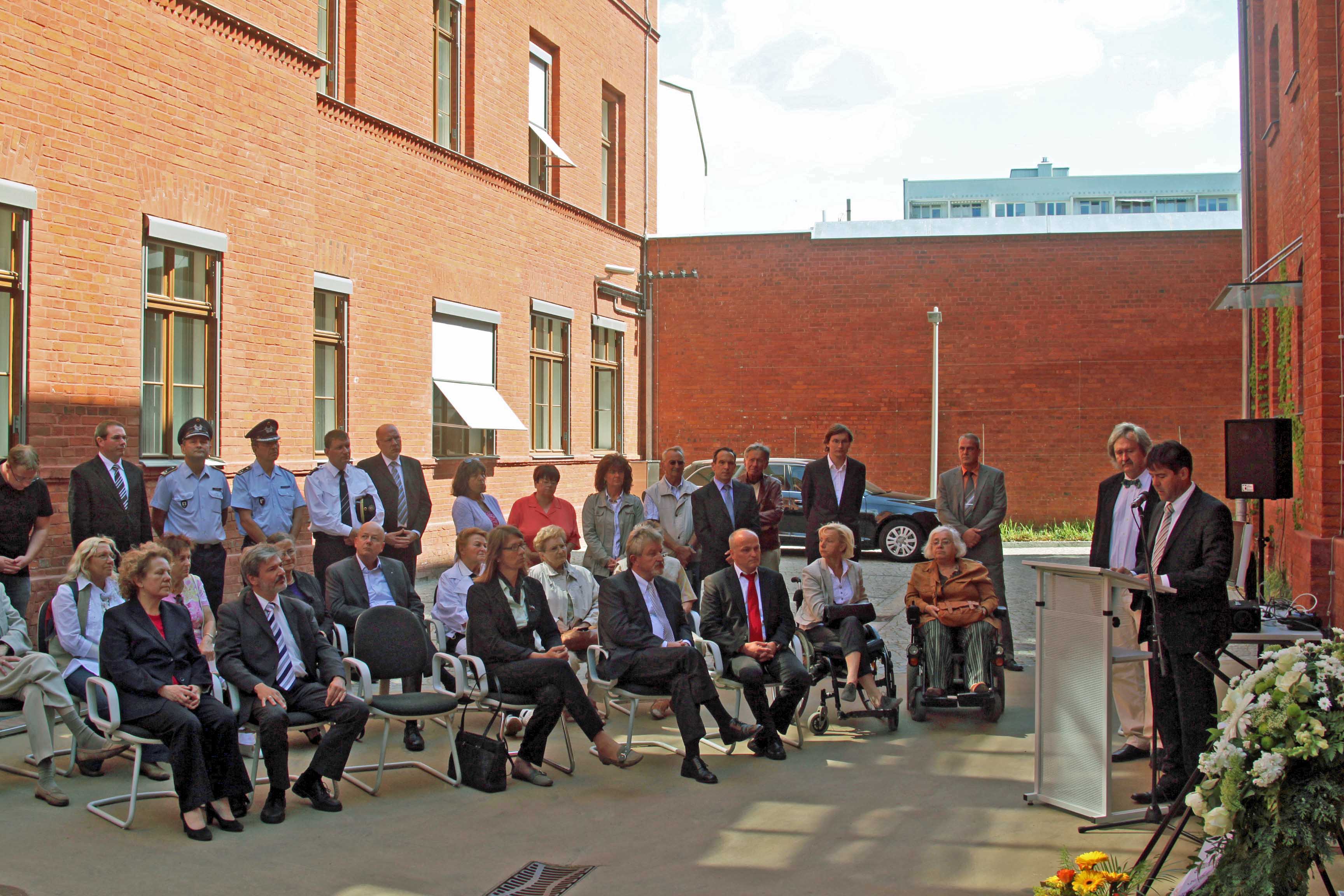 Zum Gedenken an die Opfer des Volksaufstandes vom 17. Juni 1953 wurden heute im Innenhof der Generalstaatsanwaltschaft vor dem Gebäude der ehemaligen Untersuchungshaftanstalt des Kreisgerichts Kränze niedergelegt. Generalstaatsanwalt Dr. Erardo Rautenberg begrüßte die Gäste. Bürgermeister Steffen Scheller und Justizminister Dr. Volkmar Schöneburg erinnerten in ihren Reden an die damaligen Ereignisse. Anschließend stellte Museumspädagogin Gudrun Bauer das Schülerprojekt „Befragung von Zeitzeugen des 17. Juni 1953“ vor.