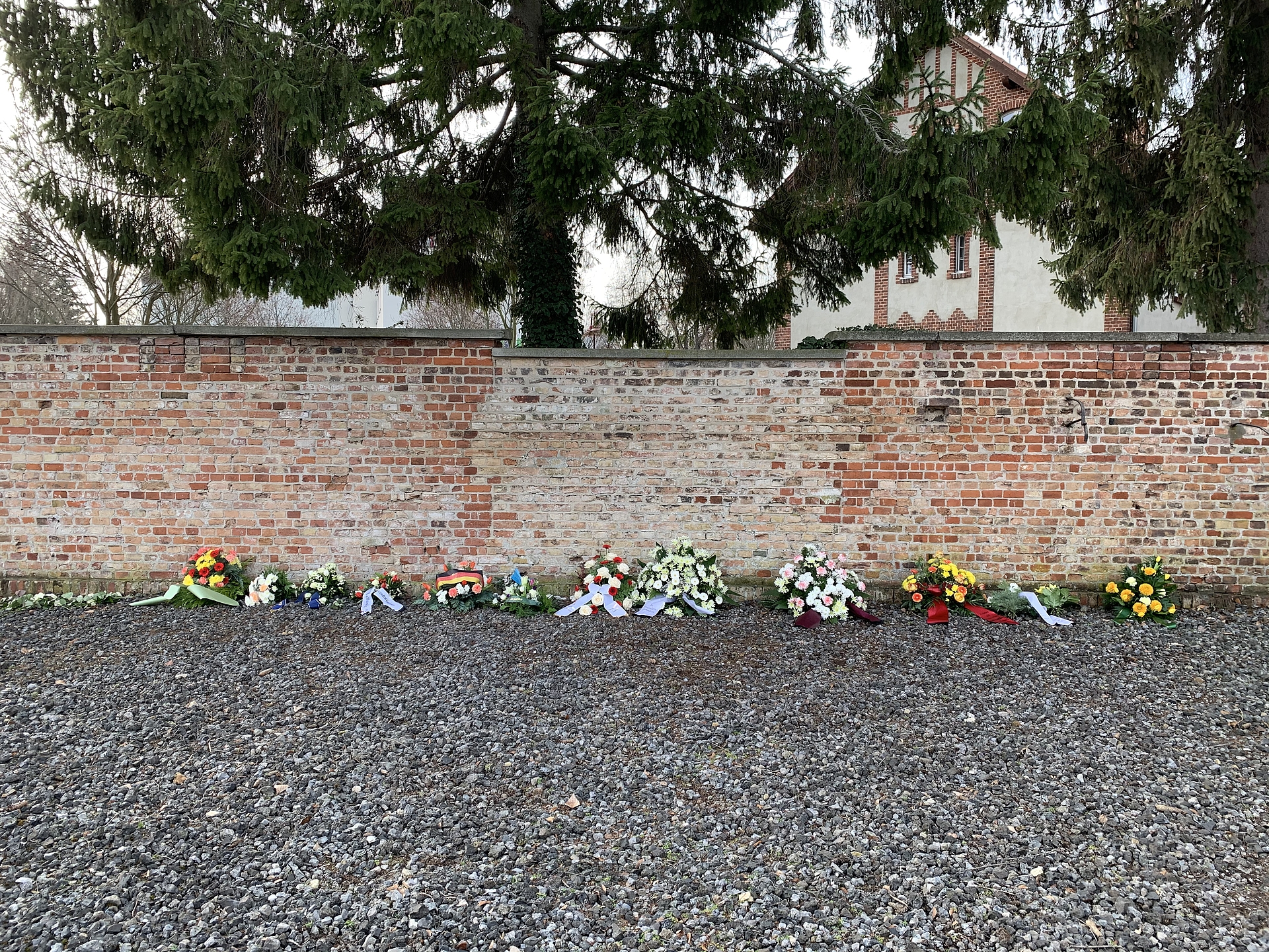 In Gedenken an die Opfer des Nationalsozialismus haben heute Vertreter aus Politik, Verwaltung und Gesellschaft sowie Angehörige von Opfern und Verfolgten des NS-Regimes Kränze an der Gedenkstätte für Opfer der Euthanasie-Morde am Nicolaiplatz niedergelegt.