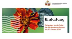 Oberbürgermeister Steffen Scheller, Walter Paaschen, Vorsitzender der Stadtverordnetenversammlung, und Dr. Sylvia Pasquale, Leiterin Gedenkstätten Brandenburg an der Havel, laden die Bürgerinnen und Bürger sowie die Vertreter des öffentlichen Lebens der Stadt am Sonntag, dem 27.01.2019 um 12:00 Uhr zur Kranzniederlegung anlässlich des Gedenktages für die Opfer des Nationalsozialismus an der Gedenkstätte für die Opfer der Euthansie-Morde am Nicolaiplatz 28 ein.