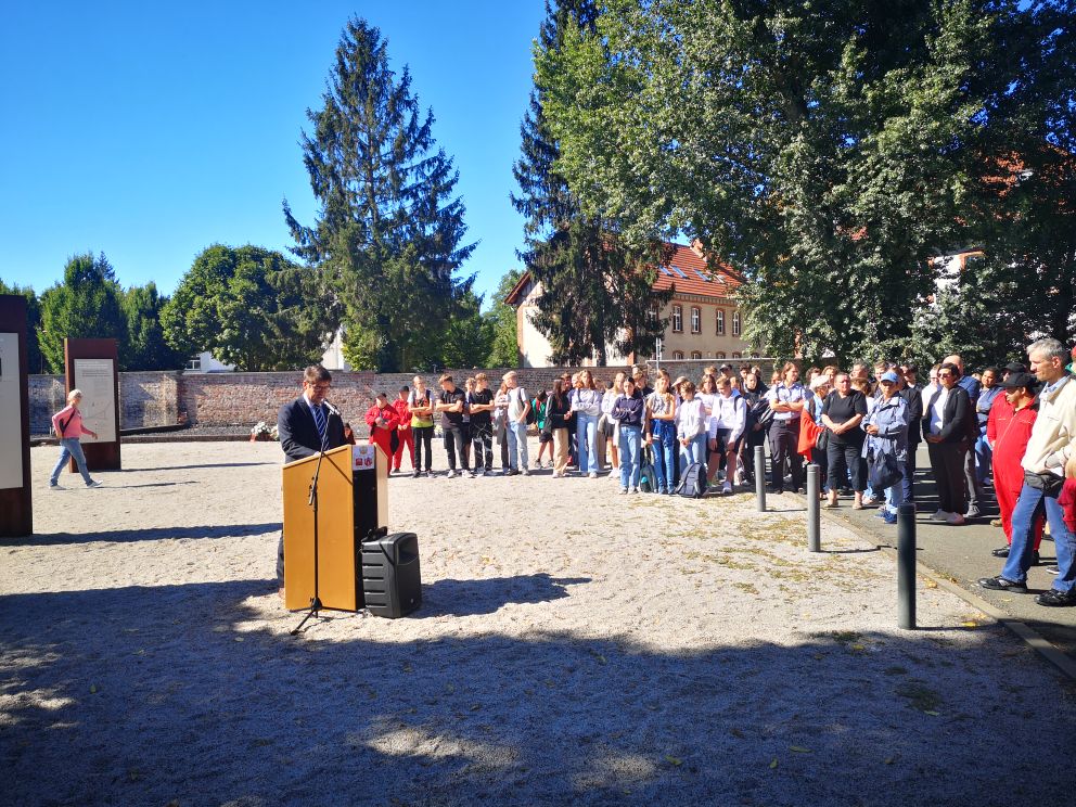 Anlässlich des 83. Jahrestages des „Gnadentod“-Erlasses von Adolf Hitler luden Oberbürgermeister Steffen Scheller und SVV-Vorsitzender Walter Paaschen am Donnerstag, 1. September 2022, zu einer Gedenkveranstaltung auf dem Gelände der Gedenkstätte für die Opfer der Euthanasie-Morde am Nicolaiplatz ein.