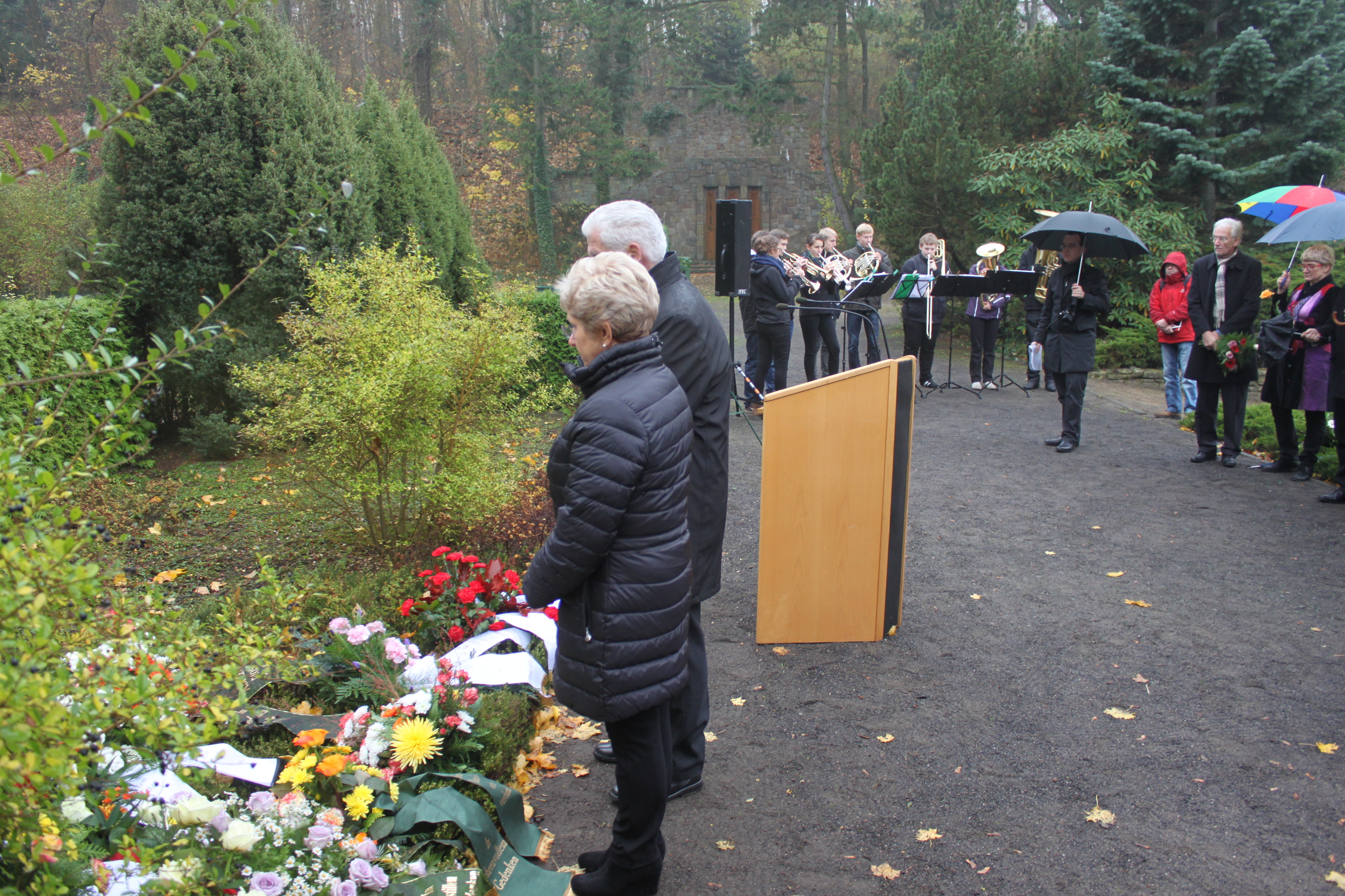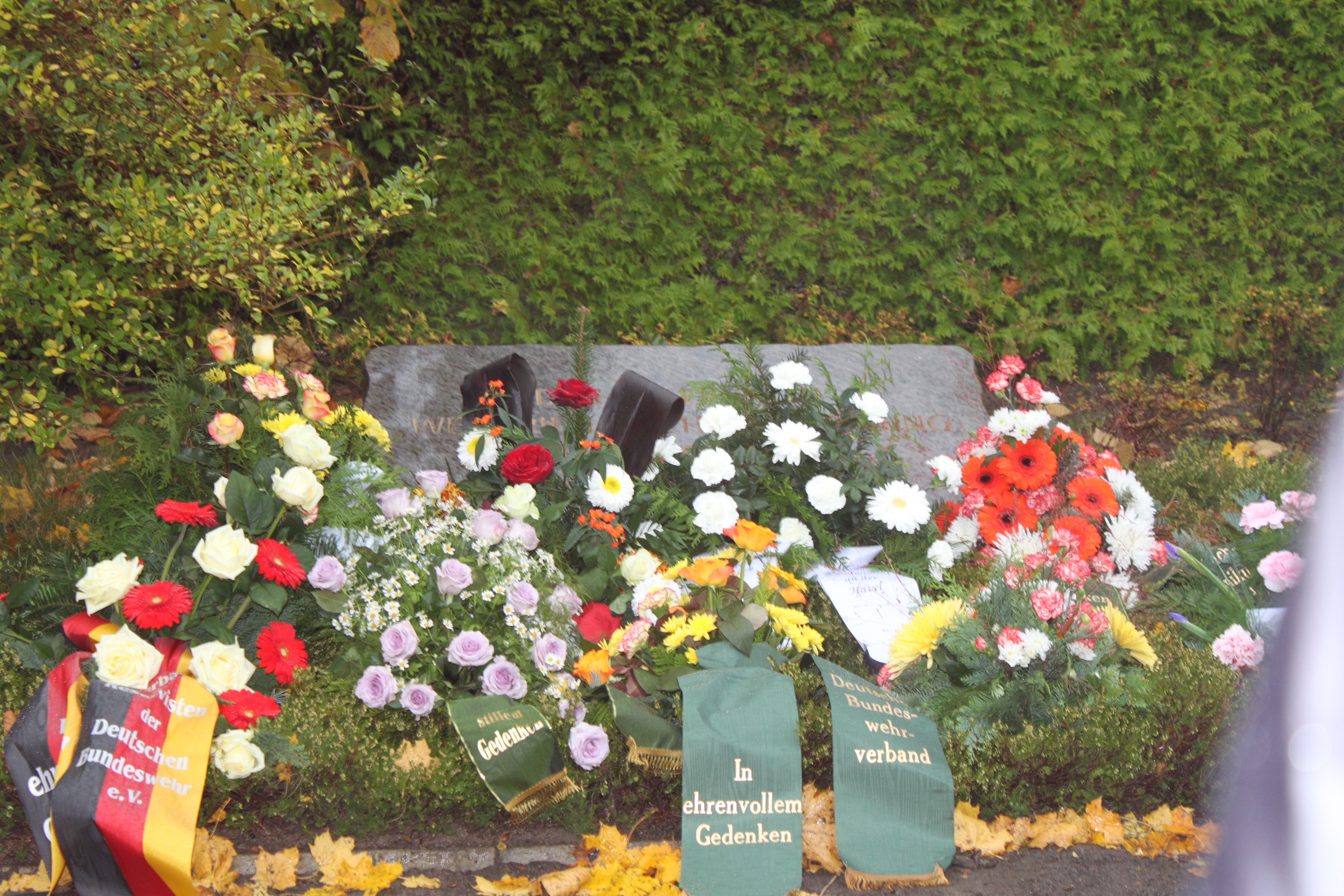 Zum Gedenken an Vertriebene, gefallene Soldaten und getötet Zivilisten legten heute Oberbürgermeisterin Dr. Dietlind Tiemann, der SVV-Vorsitzende Walter Paaschen sowie über 50 Vertreter aus Politik und Geselschaft Kränze an den Gedenksteinen am Marienberg nieder.