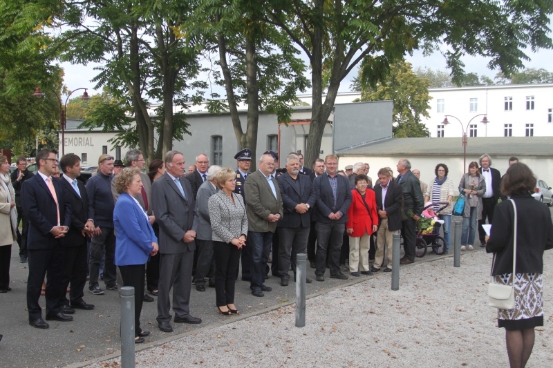 Oberbürgermeisterin Dr. Dietlind Tiemann erinnerte in ihrer Rede an die Ereignisse, die mit dem Überfall auf Polen am 1. September 1939 vor genau 75 Jahren den Beginn des 2. Weltkrieges markierten und in dessen Verlauf im Rahmen des „Euthanasie“ Programms T4 unschuldige Menschen ermordet wurden. Sie sagte:“ Genau an der Stelle, wo wir vor einer Stunde Kränze zum Gedenken an die über 9.000 Kinder, Frauen und Männer niedergelegt haben, die zwischen Februar und Oktober 1940 vergast wurden, fand der „Probelauf“ für das fabrikmäßige millionenfache Morden in Hitlers Konzentrationslagern statt. Ja es ist schwer, sich diese grauenvollen Geschehnisse in Erinnerung zu rufen und es ist auch nach so langer Zeit noch immer schwer auszuhalten, dass damals ein solcher Zivilisationsbruch geschehen konnte. Und weil das Geschehen von damals in seiner Menschenverachtung, seinem Ausmaß und seiner Brutalität so unfassbar ist, ist die Auseinandersetzung mit Einzelschicksalen ein guter Weg, sich ein Bild von dieser lang zurückliegenden Zeit und ihrer Auswirkungen zu verschaffen.“