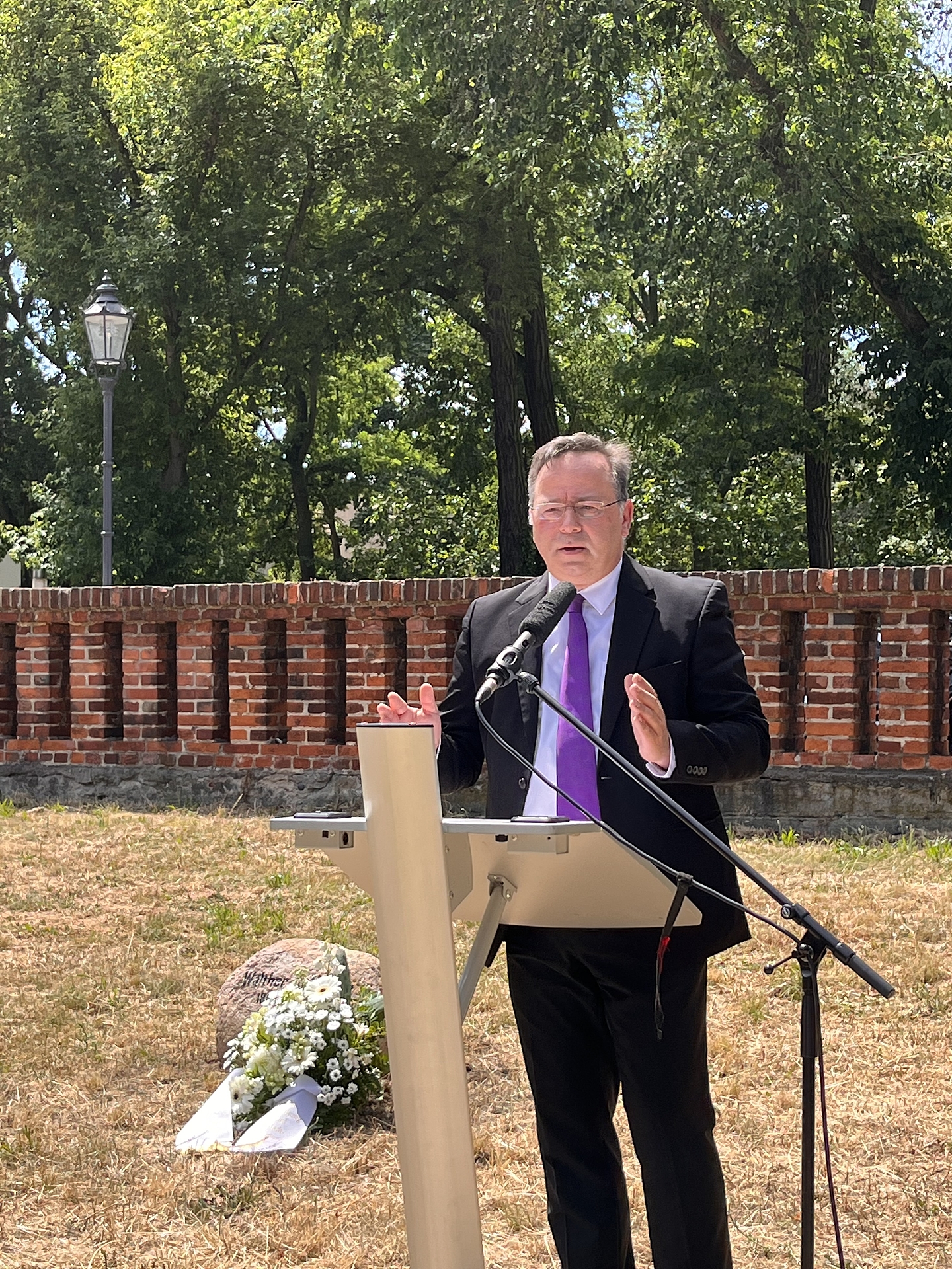 Zum 100. Todestag des am 24. Juni 1922 auf der Fahrt ins Auswärtige Amt in Berlin ermordet Außenministers der Weimarer Republik, Walther Rathenau, wurde von Bürgermeister Michael Müller, in Vertretung des Oberbürgermeisters, am Walther-Rathenau-Platz in Brandenburg an der Havels ein Gedenkstein eingeweiht.