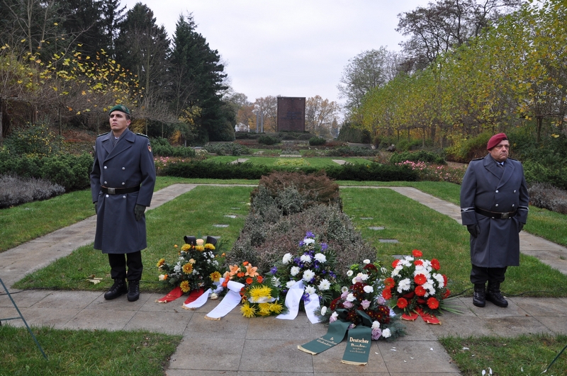 Nach der Gedenkrede von OTL d.R. Reiner Heublein am Gedenkstein für die gefallenen Soldaten ergriff Oberbürgermeisterin Dr. Dietlind Tiemann am Gedenkstein für die Ziviltoten das Wort und erinnerte dabei unter anderem daran, dass auch in Brandenburg an der Havel den Kampfhandlungen im Zweiten Weltkrieg eine Großzahl an Menschen zum Opfer gefallen ist und viele Brandenburgerinnen und Brandenburger durch Bomben umgekommen sind. Außerdem sprach sie von den ca. 1.700 politischen Häftlingen aus Deutschland und 17 weiteren europäischen Ländern, an denen während der NS-Diktatur im Zuchthaus Brandenburg-Görden Todesurteile vollstreckt wurden, und von den mehr als 9.000 Kinder, Frauen und Männern, die allein in Brandenburg an der Havel im Rahmen der „Euthanasie“-Mordaktion von den Nazis in einer der ersten Gaskammern des Dritten Reiches getötet wurden. „Am Volkstrauertag gedenken wir der Menschen, die ihr Leben viel zu früh verloren haben. Und wir denken auch darüber nach, wie wir heute auf Krieg und Gewalt reagieren und was wir für Frieden und die Wahrung der Menschenrechte tun können“ spannte die Oberbürgermeisterin am Ende ihrer Rede den Bogen von der Vergangenheit zur Gegenwart.