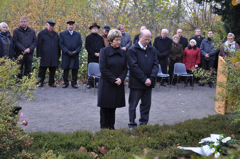 Anlässlich des Volkstrauertages, am 17. November 2013, gedachten Bürgerinnen und Bürger sowie Vertreter aus Politik, Verwaltung und Wirtschaft auf der Kriegsgräberanlage auf dem Marienberg der Opfer beider Weltkriege. An den Gedenksteinen für die Vertriebenen, die gefallenen Soldaten und die Ziviltoten wurden Kränze und Blumengebinde niedergelegt.