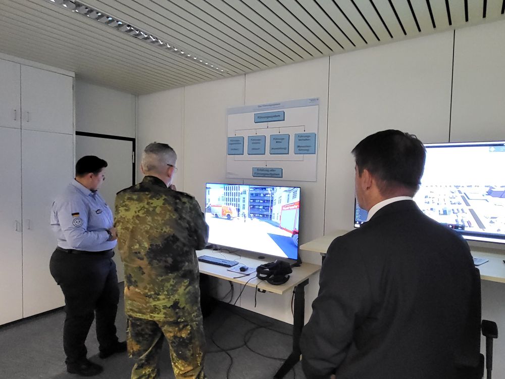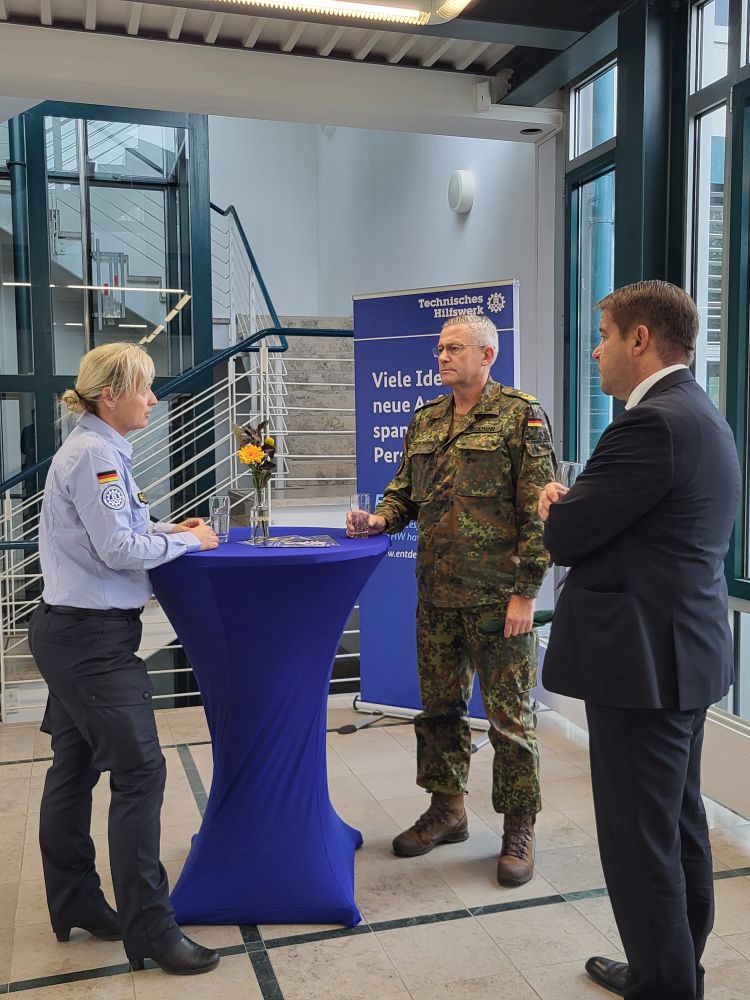 Vor Ort empfing die Leiterin des Ausbildungszentrums, Dr. Simone Kraatz, den Generalleutnant und den Oberbürgermeister. Im Mittelpunkt stand dabei das Ausloten von Berührungspunkten zwischen der Bundeswehr und den Blaulichtorganisationen. Beispielsweise sind hier Einsätze bei besonderen Lagen wie der Bekämpfung von Waldbränden oder anderen Naturkatastrophen oder die Ausbildung von Einsatzkräften zu nennen. Hier besteht sowohl vonseiten der Bundeswehr als auch dem Technischen Hilfswerk ein interesse daran, an einem gemeinsamen Netzwerk zwischen dem Heer und den Blaulichtorganisationen zu arbeiten. Regelmäßige Treffen könnten hier in Zukunft Abstimmungen und Zusammenarbeit weiter stärken.