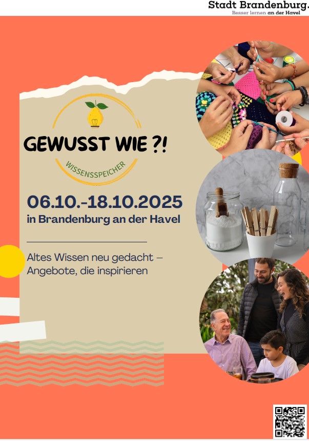 Die Themenwochen "Gewusst wie?! – Wissensspeicher" laden vom 06. bis 18. Oktober 2025 dazu ein, altes Wissen neu zu entdecken. In zahlreichen Veranstaltungen dreht sich alles um bewährte Techniken, traditionelle Fertigkeiten und kreative Ideen, die den Alltag einfacher, nachhaltiger und spannender machen. Das Programm richtet sich an alle, die Freude daran haben, mit den eigenen Händen zu arbeiten und dabei auf Wissen zurückzugreifen, das über Generationen weitergegeben wurde.