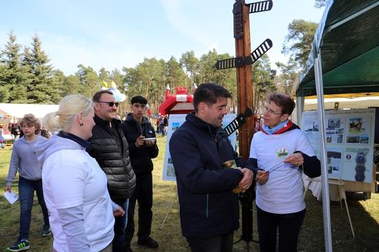 Das sechsstündige 22. Osterbaumfest in Mahlenzien, das vom Feuerwehrverein Mahlenzien e.V. mit Unterstützung der Stadt Brandenburg an der Havel organisiert wurde, lockte am Samstag zahlreiche Besucherinnen und Besucher auf das österlich gestaltete Gelände hinter dem Feuerwehrgerätehaus in dessen Mitte der große festlich dekorierte Osterbaum stand. Hoch an der Birke hängen die überdimensionalen Ostereier, die der ehemalige Ortsvorsteher Karl-Dietrich Roth angefertigt hat. Oberbürgermeister Steffen Scheller kam bei einem Rundgang mit Ortsvorsteher Hartmut Klingsporn mit Ausstellern und Gästen ins Gespräch.