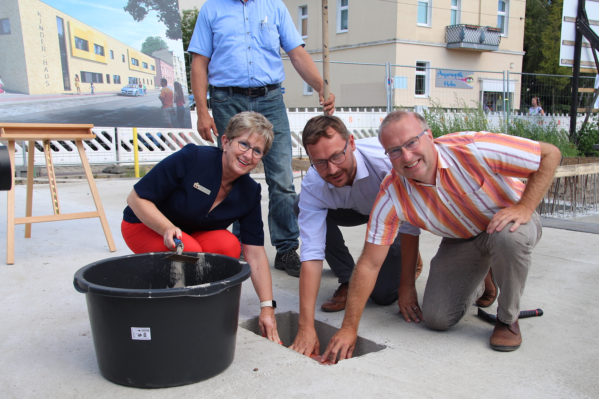 „Unsere Stadt verzeichnet die höchsten Geburtenzahlen seit der Wende und erlebt einen Rekord-Zuzug aus dem Umland. Wir haben auf diese schöne, aber auch herausfordernde Trendwende in den letzten Jahren kontinuierlich reagiert: Von 2013 bis 2017 haben wir insgesamt über 600 Kita-Plätze neu geschaffen und belegt. In 2017 werden wir mit dem modulweisen Ersatzbau für den Hort Havelkids noch in diesem Jahr knapp 280-300 Plätze zur Verfügung stellen können.“ so Dietlind Tiemann bei der heutigen Grundsteinlegung des Kita-Neubaus in der Bauhofstraße.