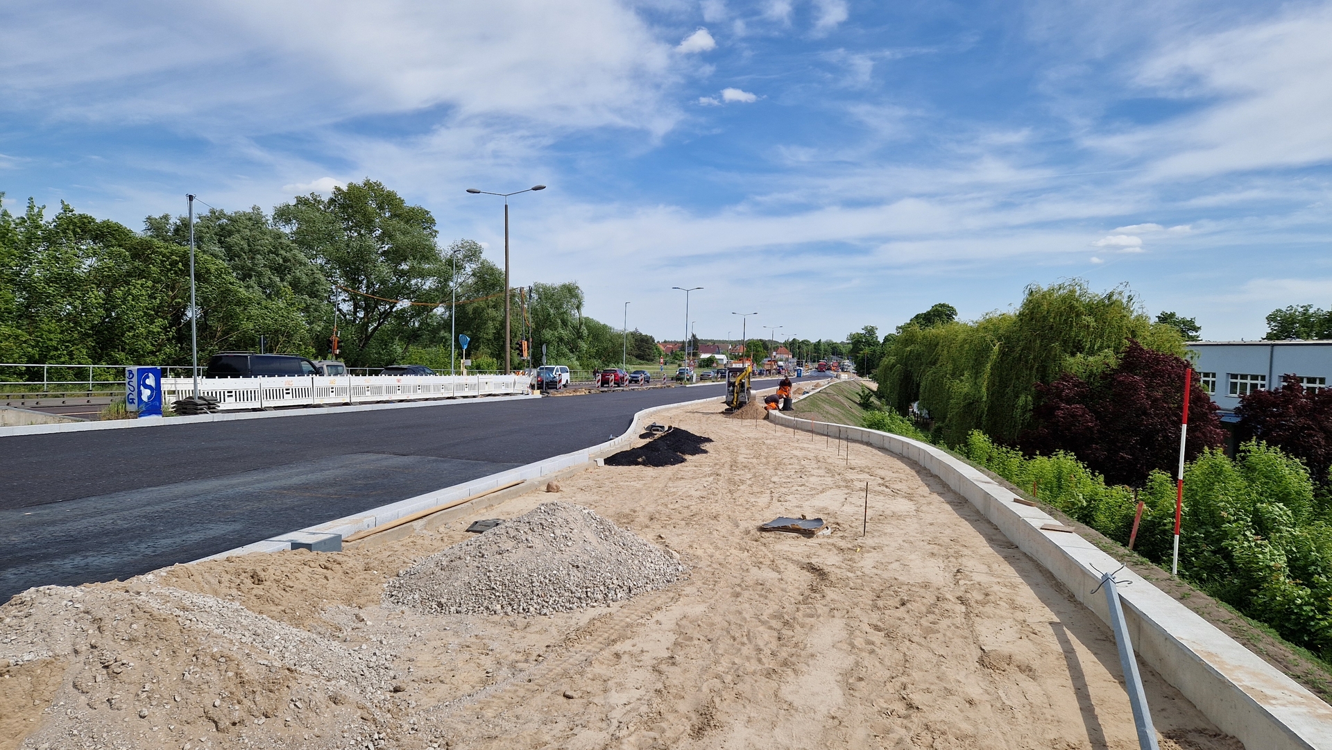 Kommende Woche wechselt der Asphalt-Trupp auf den Nord-Ost-Abschnitt. Die Asphaltarbeiten, die auch den zwei Meter breiten Radweg einbeziehen – der Fußweg wird gepflastert -, werden sich bis in die 22. Kalenderwoche erstrecken. Sodann sind noch Geländer und in beiden Brückenbereichen Verkehrsrückhaltesysteme zu montieren, Straßenlaternen zu installieren, Straßenanschlüsse herzustellen, Böschungen anzudecken und weitere Arbeiten an den Nebenanlagen zu erledigen. In der Woche ab dem 2. Juni 2025 sollen die Fahrbahnmarkierungen aufgebracht werden, sodass zum Ende dieser 23. Kalenderwoche die stadtauswärtige Fahrbahn für den Verkehr freigegeben werden könnte. Dafür sollte es überwiegend trocken bleiben, denn Gussasphalt und Regen vertragen sich, das könnte zur Blasenbildung im Asphalt führen.