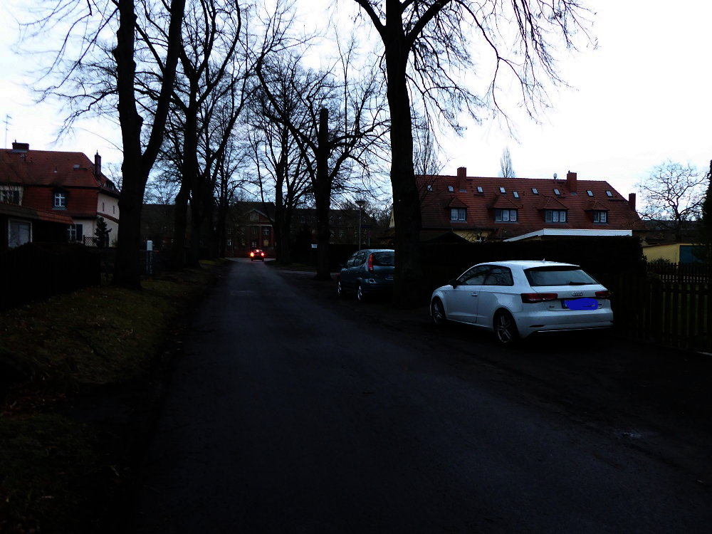 Auf Grund der geringen Straßenbreite ist das Halten und Parken auf der Fahrbahn keine Alternative und bleibt verboten.