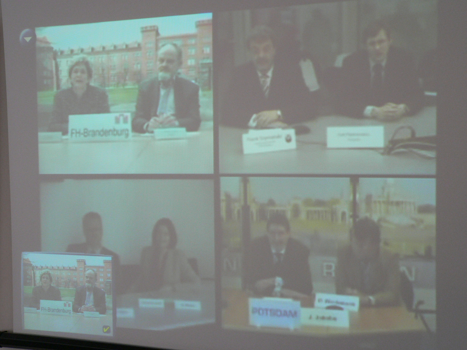 Im Rahmen einer gemeinsamen Video-Pressekonferenz der vier kreisfreien Städte des Landes Brandenburg unterstrichen am Montag, 19.03.2007, Oberbürgermeisterin Dr. Dietlind Tiemann und Prof. Dr. Rainer Janisch, Präsident der Fachhochschule Brandenburg, die über die Landeshauptstadt hinaus gehende Bedeutung der Teilnahme Potsdams an diesem bundesweiten Wettbewerb.