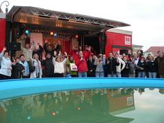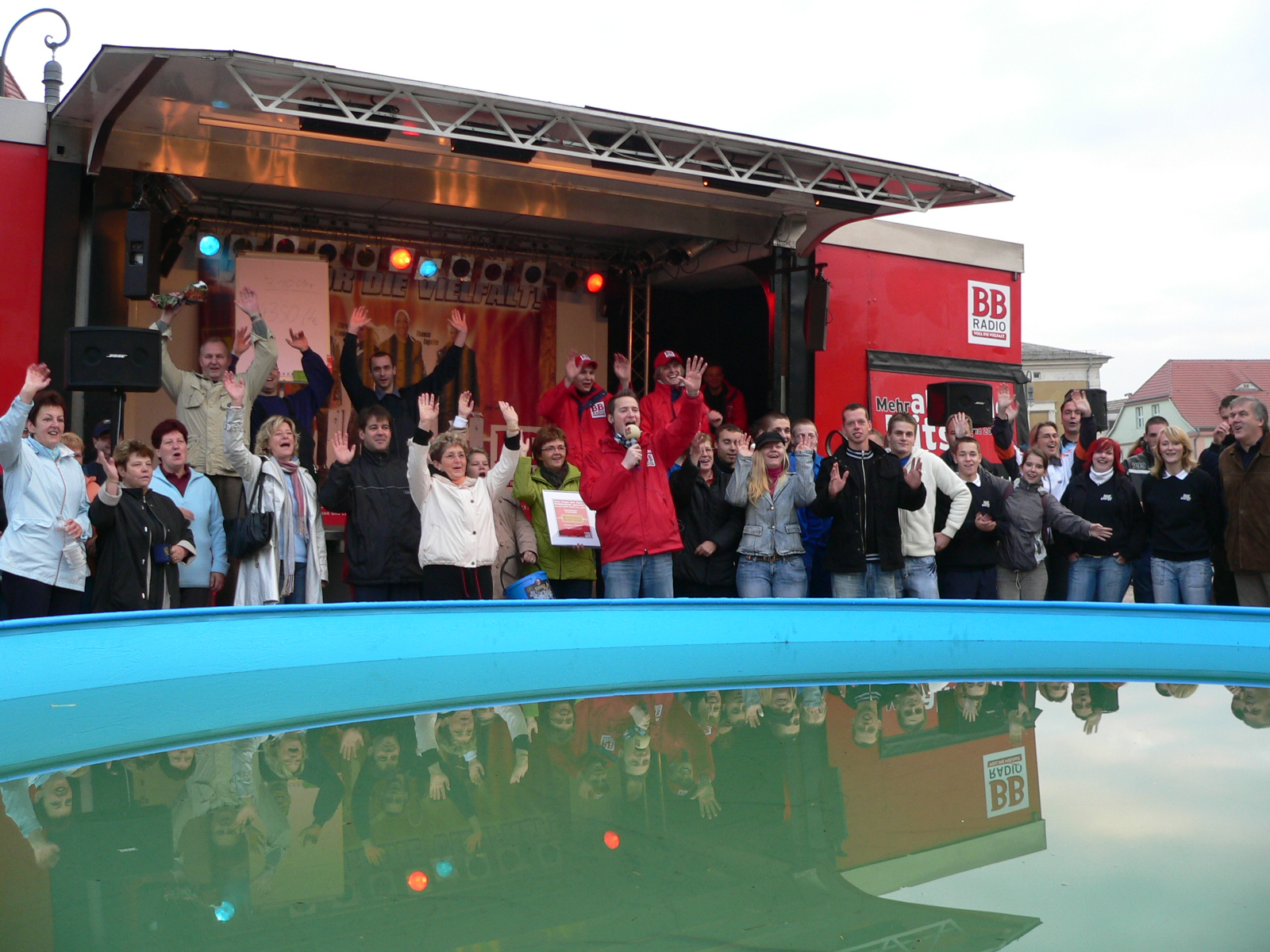 Bereits weit vor 08:00 Uhr stand fest, dass Brandenburg an der Havel das Rennen macht und mit ca. 4.500 Litern das Becken vor Frankfurt/Oder gefüllt hat. Die Oberbürgermeisterin dankte allen Brandenburgerinnen und Brandenburgern für die große Unterstützung und freute sich gemeinsam mit allen Anwesenden über die erfolgreiche Aktion.