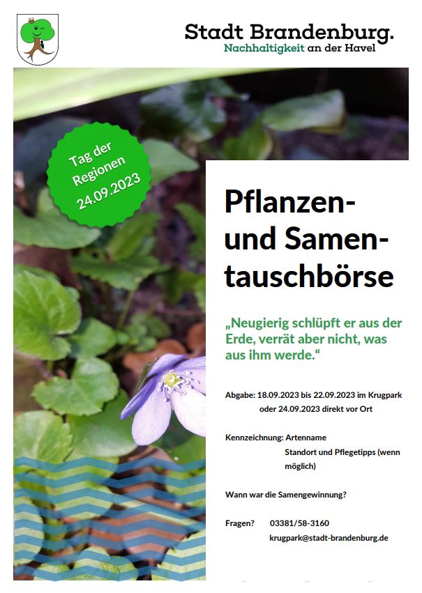 Spenden für die Pflanzen-Tauschbörse können auch in der Woche vom 18.09. bis 23.09.2023 im Naturschutzzentrum Krugpark abgegeben werden.