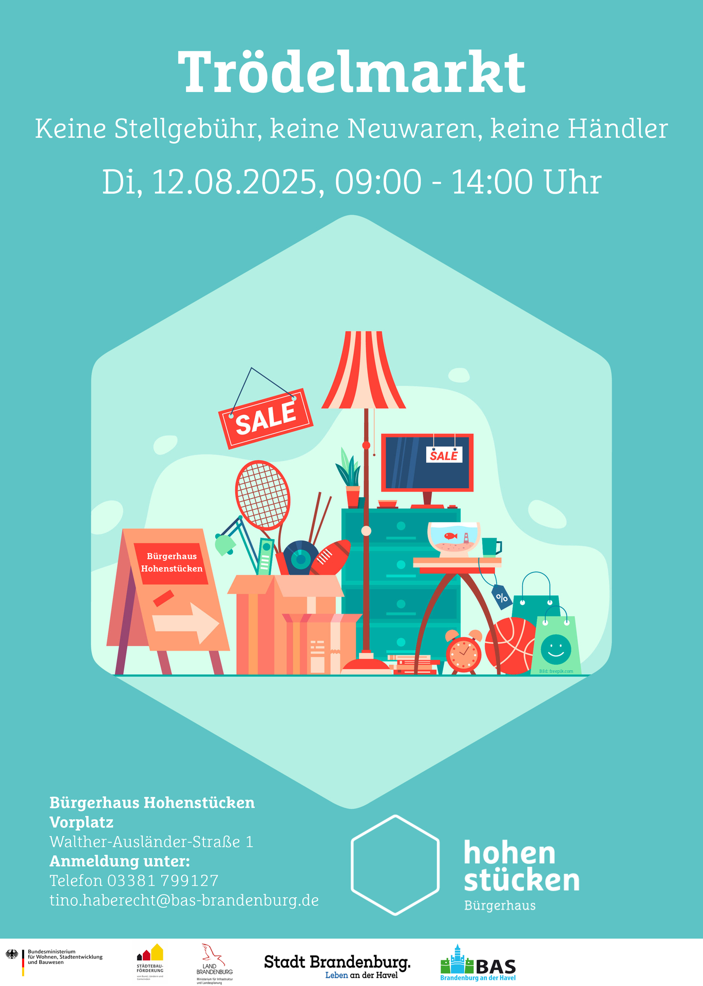 Am Dienstag, 12. August 2025, kann in der Zeit von 09:00 bis 14:00Uhr auf dem Vorplatz des Bürgerhauses Hohenstücken in der Walther-Ausländer-Straße 1 getrödelt werden. Laut Bürgerhaus-Koordinator Tino Haberecht wird keine Standgebühr erhoben.