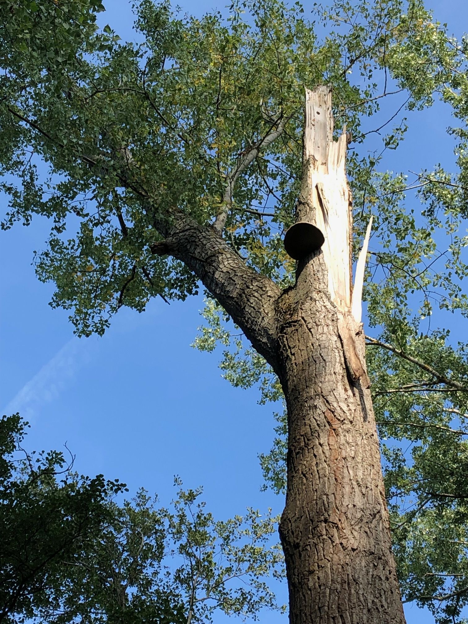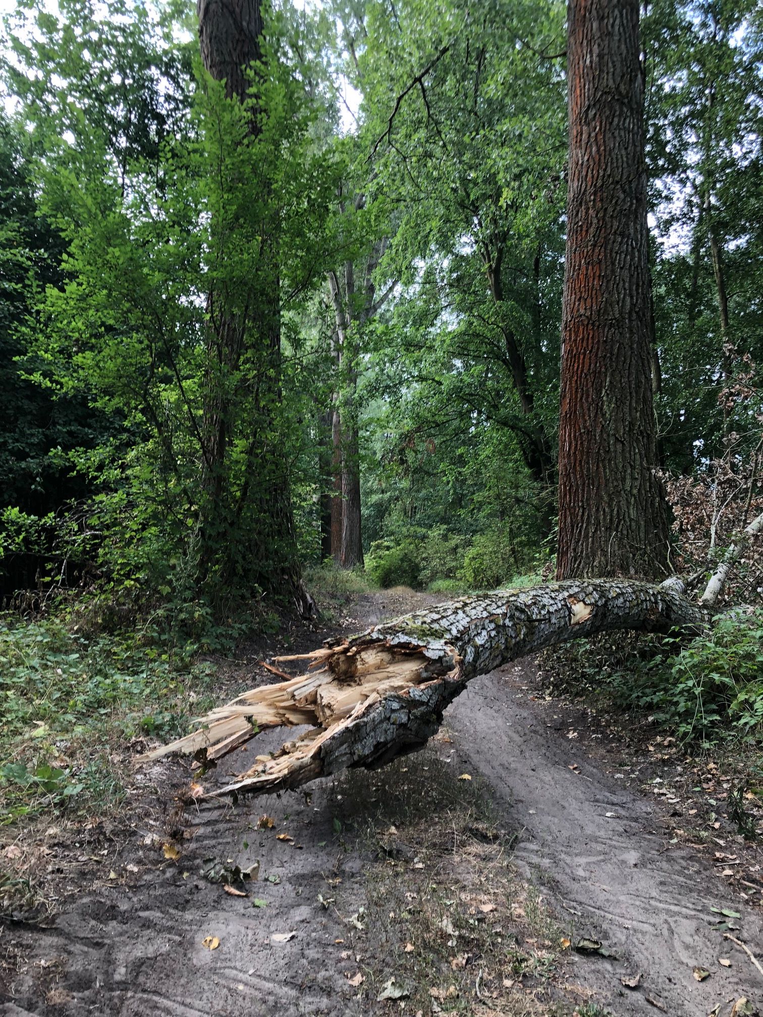 Die entlang des Weges stehenden Pappeln haben mit ca. 80 Jahren ihr natürliches Alter erreicht und befinden sich im Absterbeprozess. Pilzkonsolen an den Bäumen und Stammfäule zeugen von einer fortgeschrittenen Zersetzung. Dadurch kommt es vermehrt zu plötzlichen und unvorhersehbaren Astabbrüchen, die eine ständige Gefahr für die Spaziergänger bedeuten.