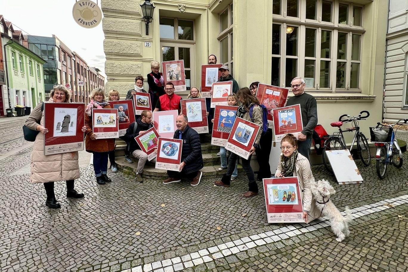Die „Bilder-Meile“ ist eine Hommage an den Ehrenbürger Vicco von Bülow im Rahmen der Feierlichkeiten in der Havelstadt zum 100. Geburtstag. Gezeigt werden die Werke bis Ende Januar 2024 in der Innenstadt.