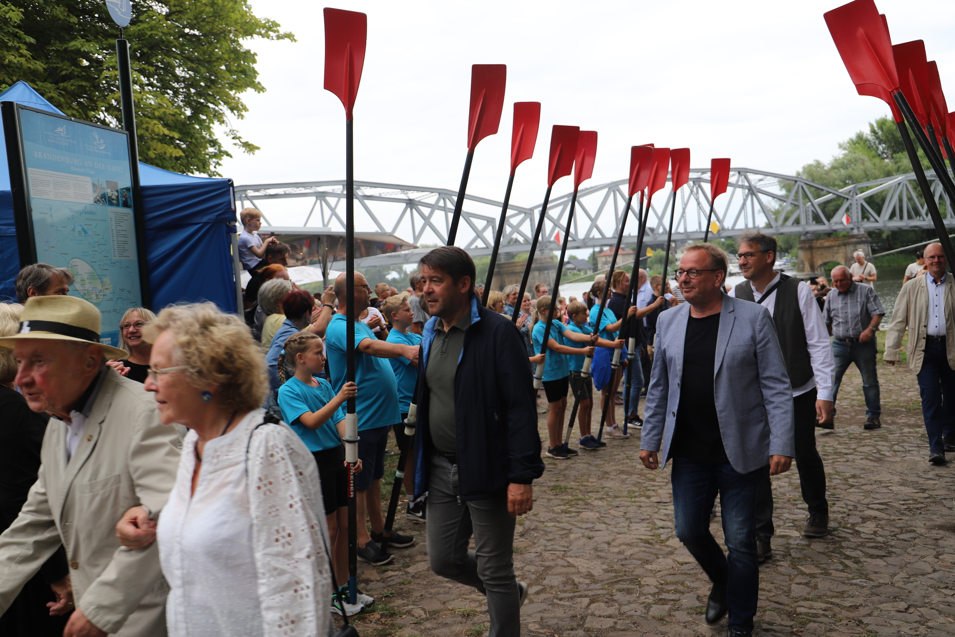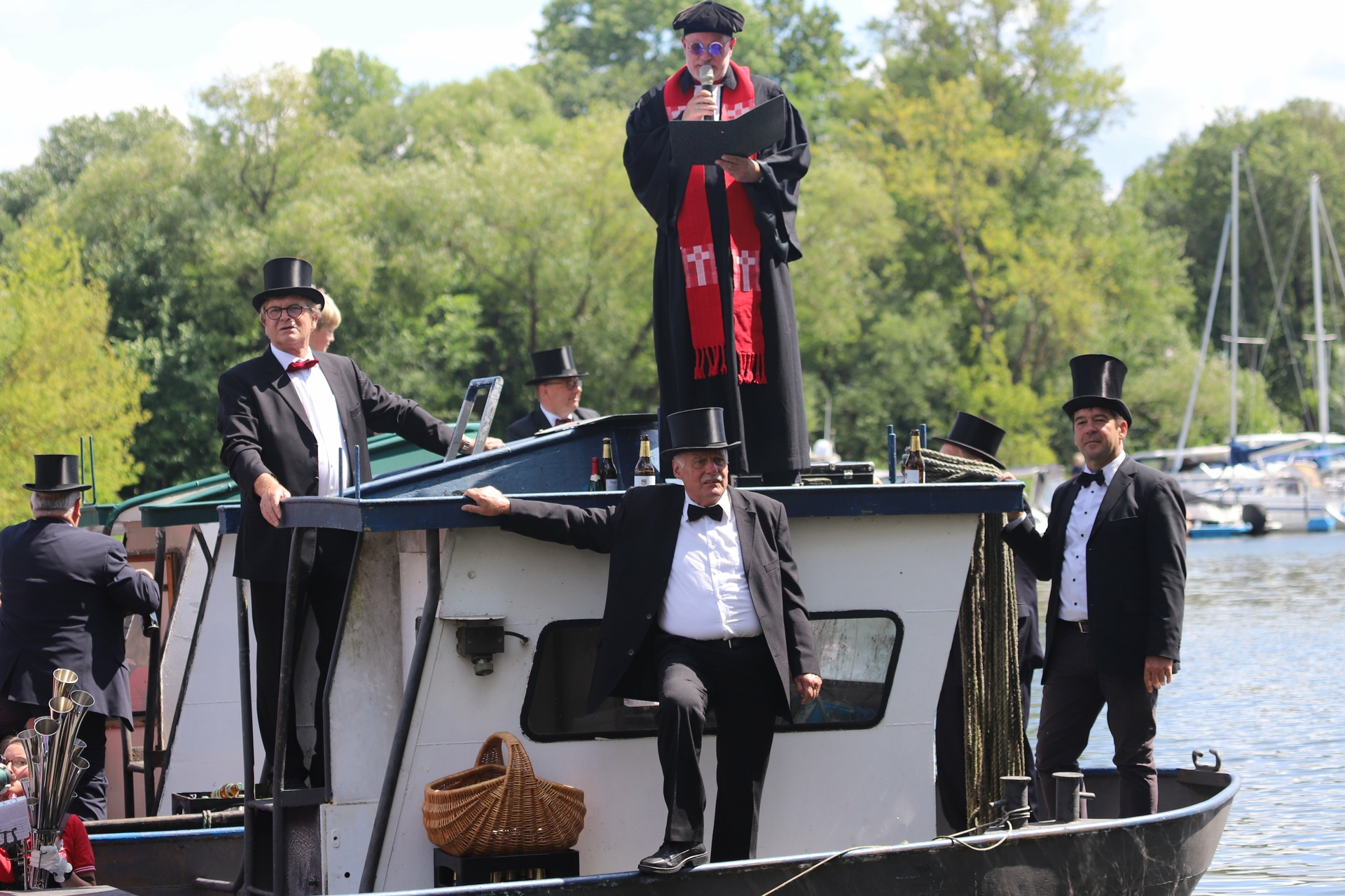 Am Sonntag fand traditionell die festliche Prozession auf der Havel statt. Die Fischerfamilien zogen dabei von der Plauer Brücke mit ihren Kähnen über die Havel bis zum Wendsee, wo sie wendeten. Mit an Bord auch Oberbürgermeister Steffen Scheller und Ortsvorsteher Udo Geiseler. Die Segnung vom Schiff aus erfolgte durch Pfarrer Christian Bochwitz, dessen Zeremonie durch die Märkischen Schalmeienkapelle Brandenburg 1958 e.V. musikalisch begleitet wurde.