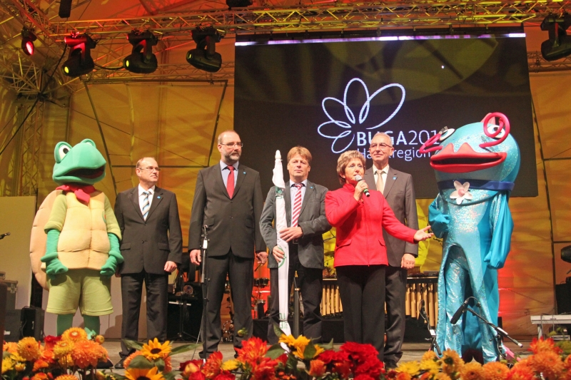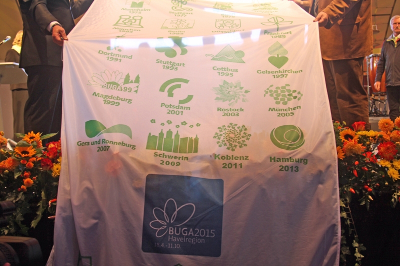 Am Abend des 13.10.2013, dem letzten Öffnungstag der internationalen gartenschau (igs) in Hamburg überreichten Vertreter der igs 2013 den Staffelstab – eine Fahne mit den Logos der bisherigen Bundesgartenschauen – an die Vertreter der nächsten großen Gartenschau in der Bundesrepublik Deutschland, die BUGA 2015 in der Havelregion, die mit gleich 5 Kommunen als Ausrichterstädte ins Rennen um die Gunst der Gartenschauliebhaber geht.