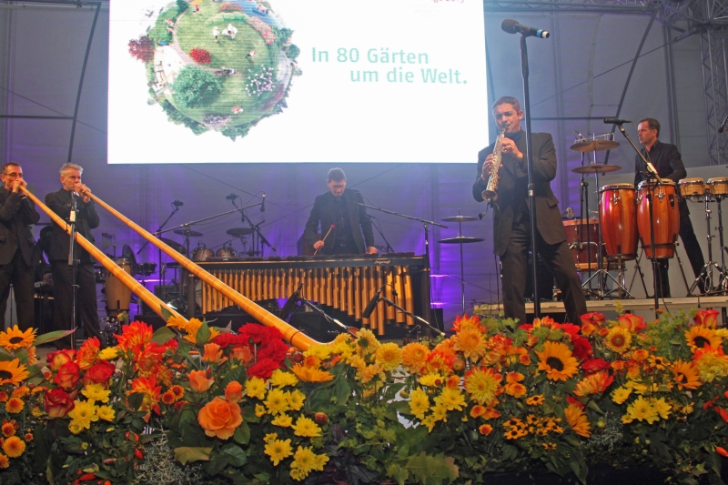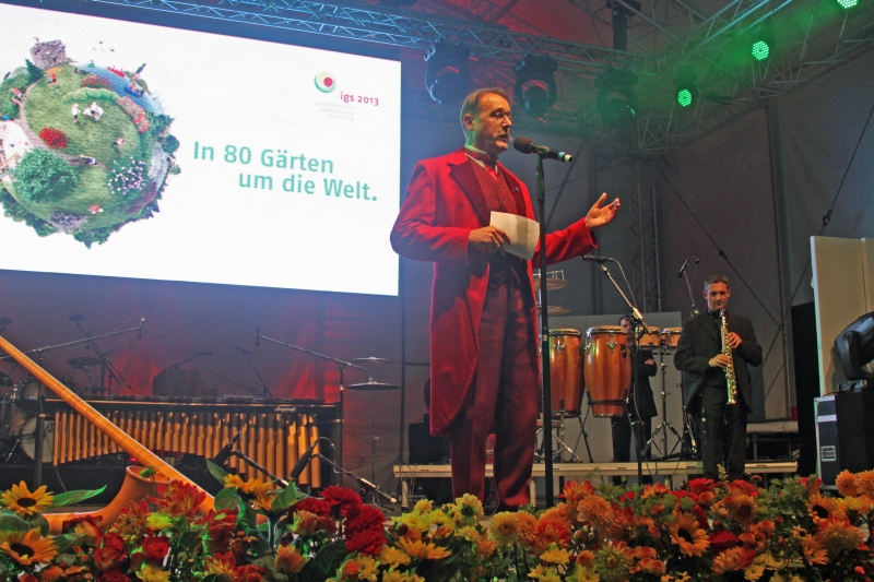 auf die Bühne gebeten, um offiziell den Staffelstab in Empfang zu nehmen. Anschließend begrüßte BUGA-Zweckverbandsvorsitzende Dr. Dietlind Tiemann die Gäste, warb für die BUGA 2015 und leitete zur Premiere des neuen Imagefilms der BUGA 2015 Havelregion über. Im Anschluss begeisterten Theodor Fontane alias Hank Teufer, Leiter des event theaters Brandenburg an der Havel, und das Musikensemble Jacaranda die Gäste der Abschlussveranstaltung.