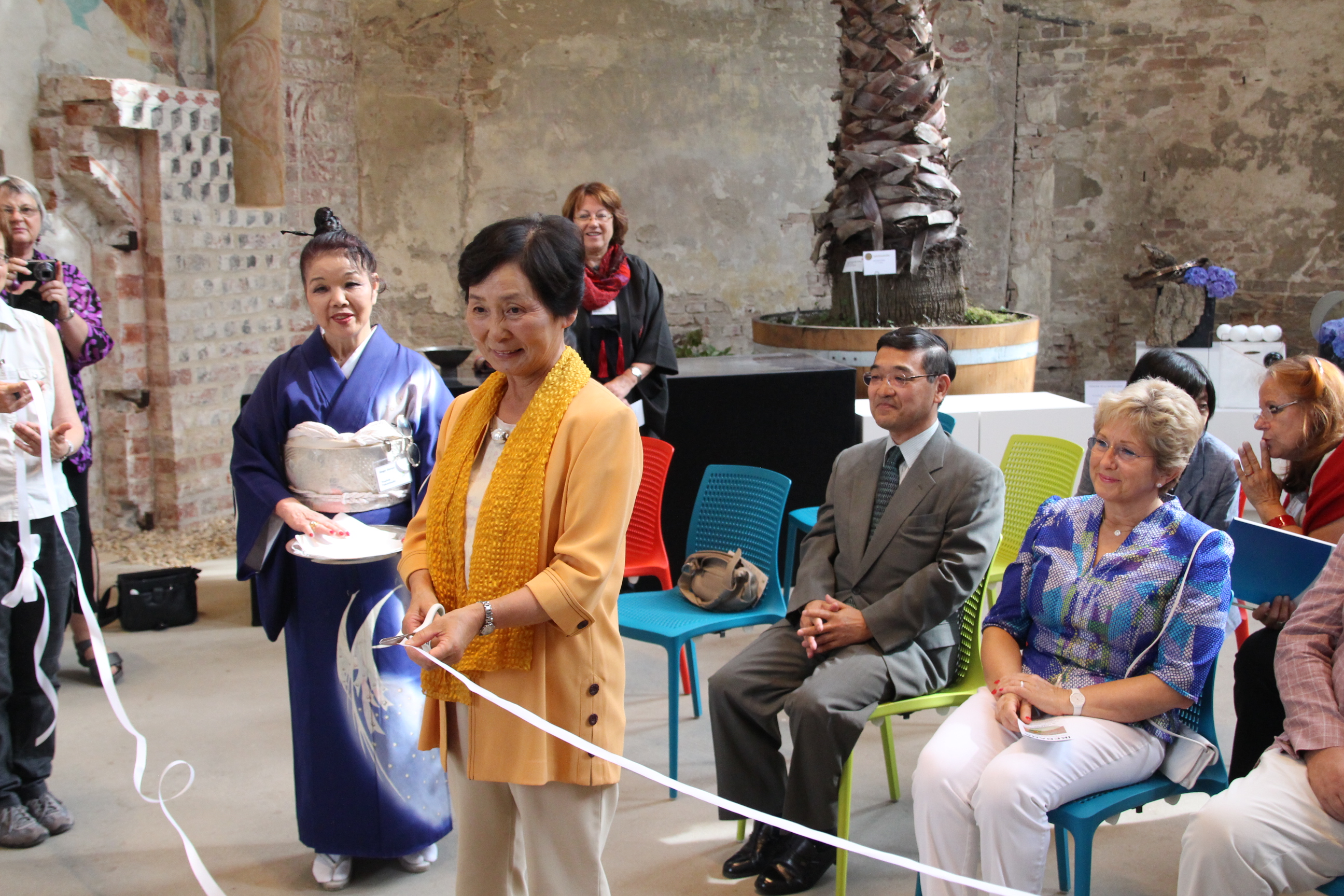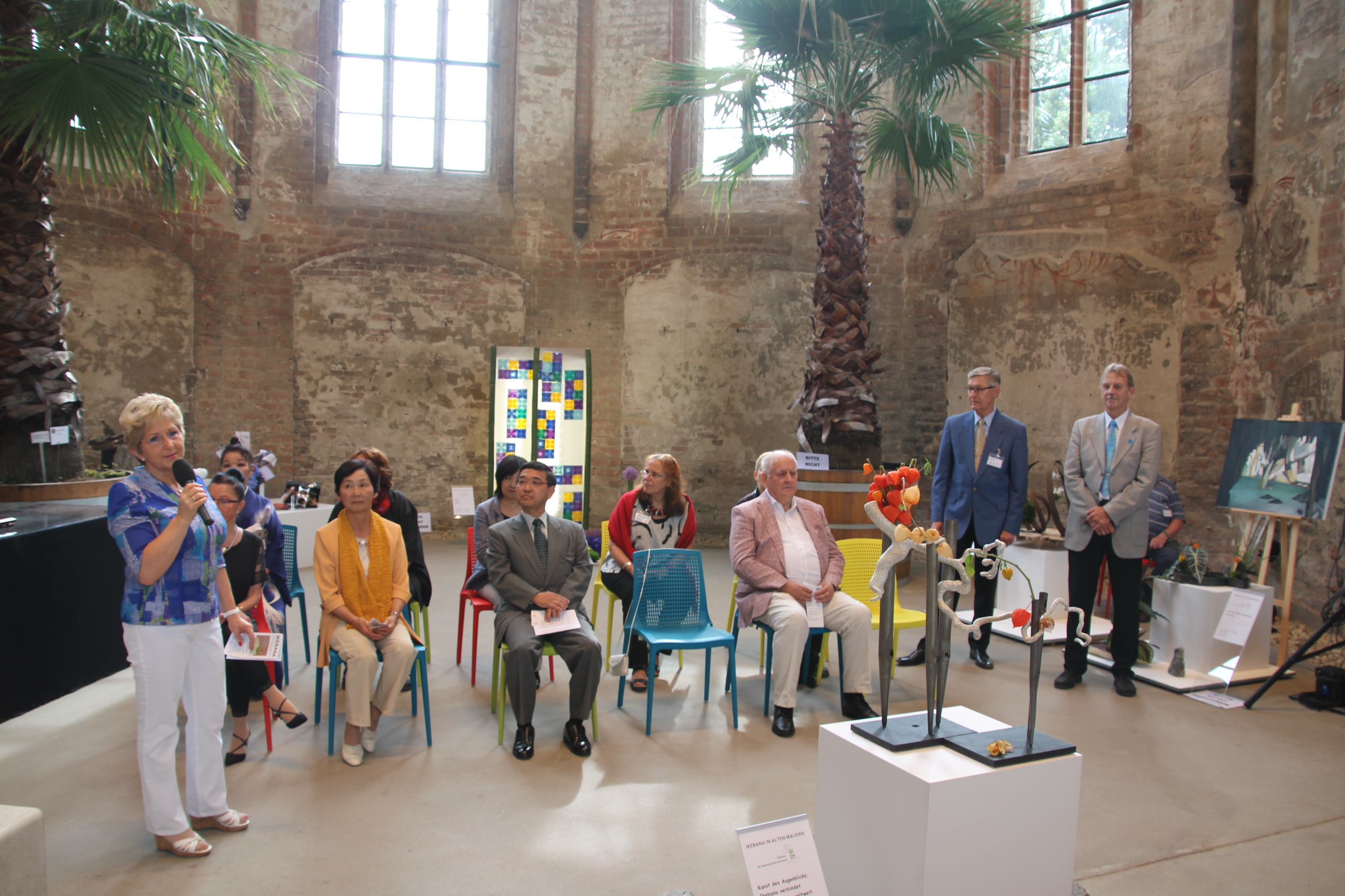 Am Donnerstag, 27.08.2015, eröffneten in der Blumenhalle die Gattin des Japanischen Botschafters Kazuko Nakane, der Botschaftsgesandte der japanischen Botschaft, Takayuki Miyashita, und Jörg Löschmann, Präsident des Ikebana-Bundesverbandes, gemeinsam mit BUGA-Zweckverbandsvorsitzende und Oberbürgermeisterin Dr. Dietlind Tiemann die Ikebana-Ausstellung in der St. Johanniskirche in Brandenburg an der Havel.