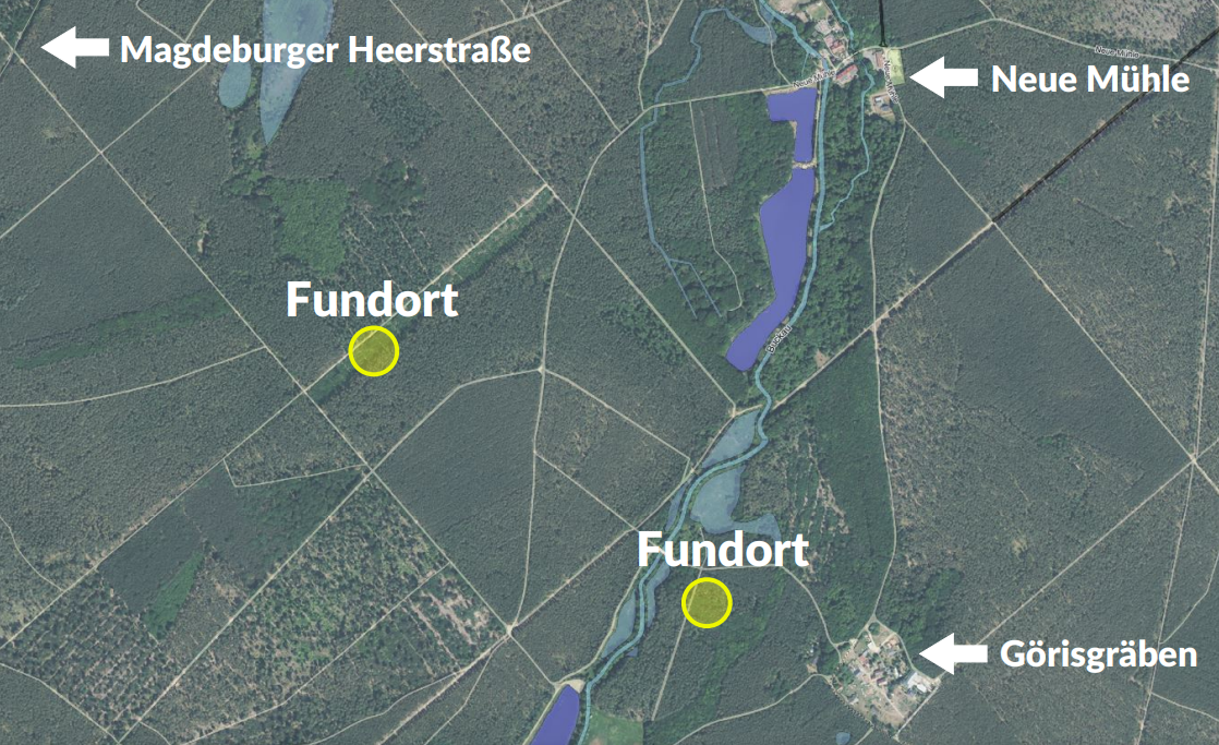 Ein weiterer Fundort wurde ebenfalls in der Verlängerung Görisgräben, in Richtung Neue Mühle, neben der Brücke, die die Buckau überquert, entdeckt. Auch hier wurden Kabelreste gefunden.