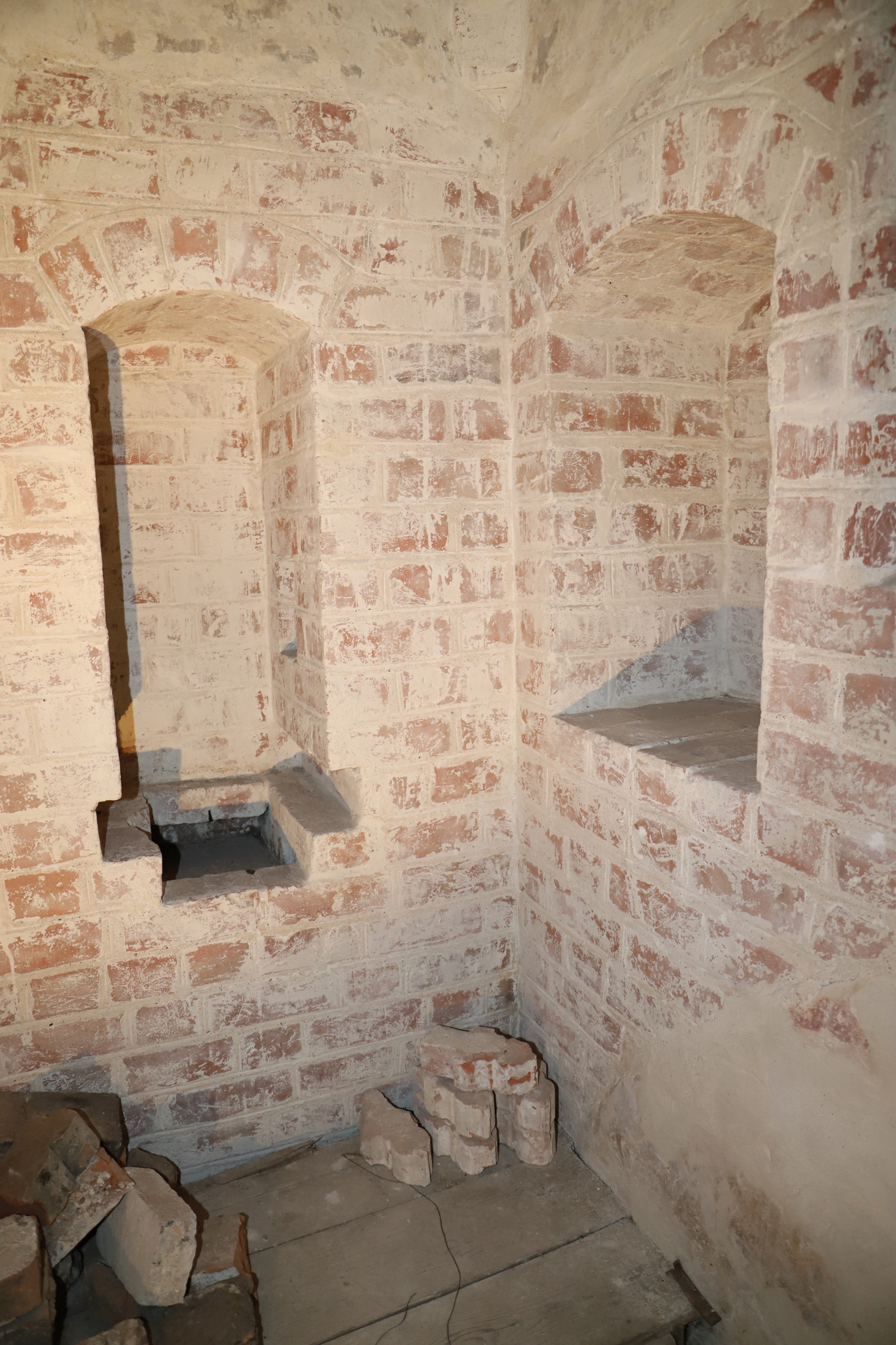 Zurück zum Rathaus, in seinem untersten Geschoss lag ein kleiner Gefängnisraum, vermutlich ein Arrestlokal für Straftäter, die dem Richter vorgeführt werden sollten. In den dortigen Sitznischen sind noch die Spuren von Halseisen erkennbar.