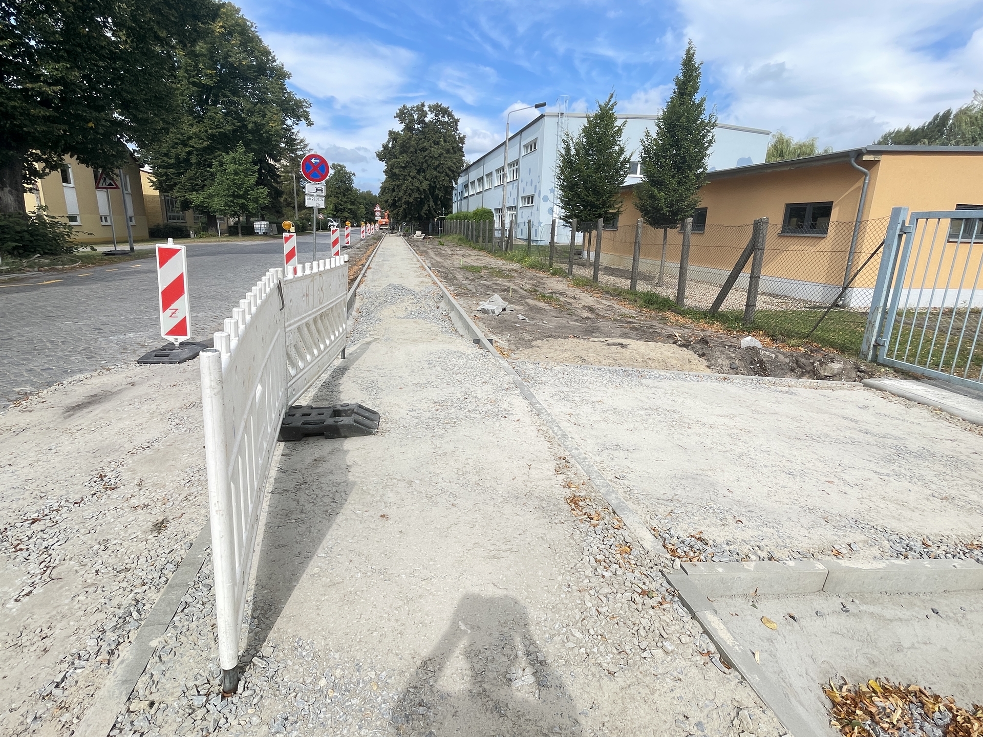Die Arbeiten am neuen Gehweg in der Potsdamer Landstraße liegen im vereinbarten Bauzeitenplan. Unter der Regie des Poliers Torsten Pauluth von der Firme HTB aus Wenzlow wurden der Einbau der Frostschutzschicht, die Erdarbeiten sowie das Einsetzen der Borde im ersten Bauabschnitt abgeschlossen. Dieser Abschnitt ist ca. 126 m lang.