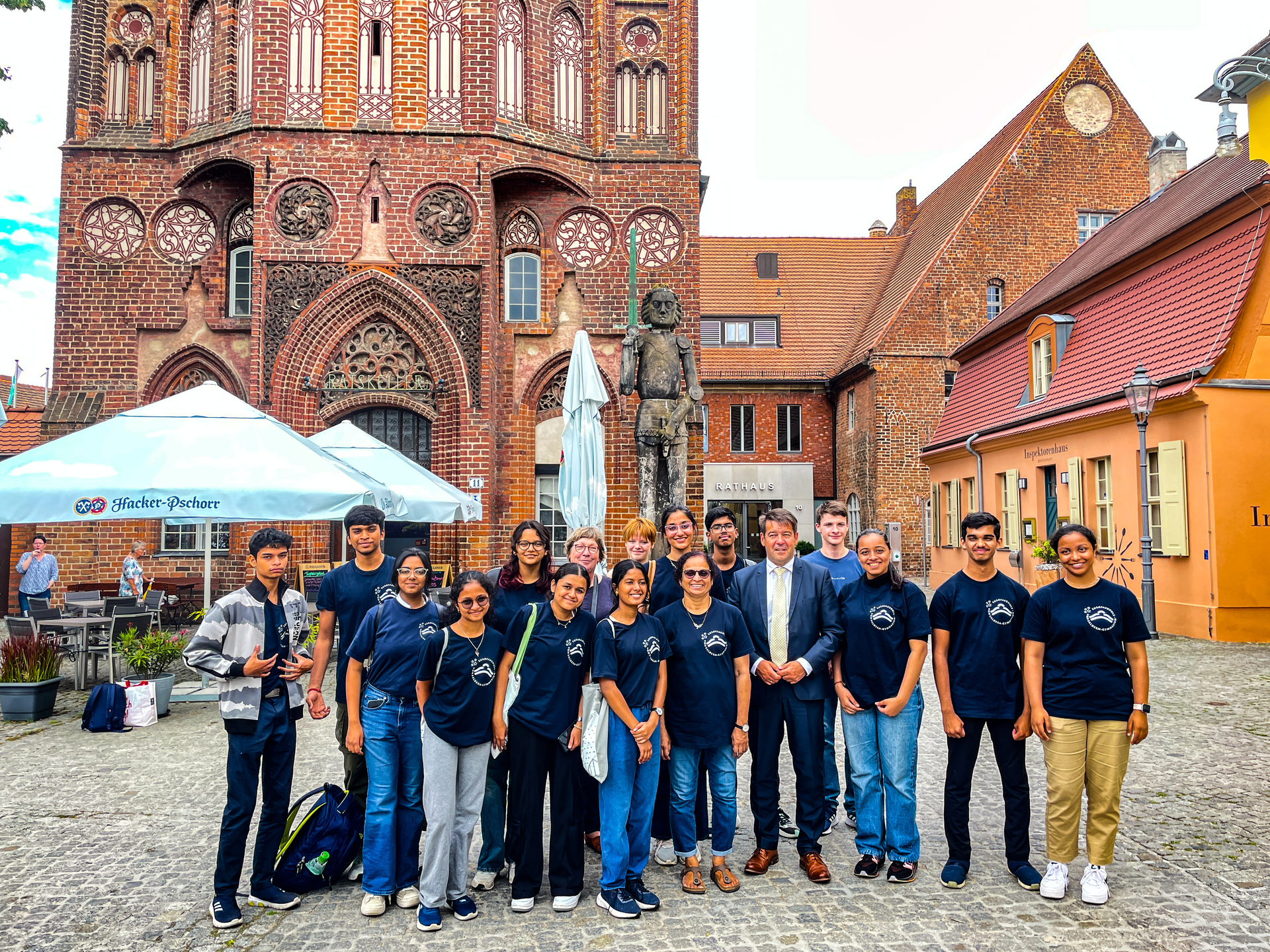 Zwölf 16-jährige Schülerinnen und Schüler aus Indien, begleitet von Lehrerin Durbha Alivelu, sind derzeit im Rahmen eines 15-tägigen Austauschprogramms in Brandenburg an der Havel zu Gast. Möglich gemacht wird dieser Austausch durch das Deutschland Plus-Programm des Pädagogischen Austauschdienstes (PAD), das internationale Begegnungen und den kulturellen Austausch fördert. Die Schüler wohnen bei Brandenburger Gastfamilien, lernen verschiedene Einrichtungen kennen, unternehmen Ausflüge und nehmen am Unterricht im von Saldern-Gymnasium teil.
