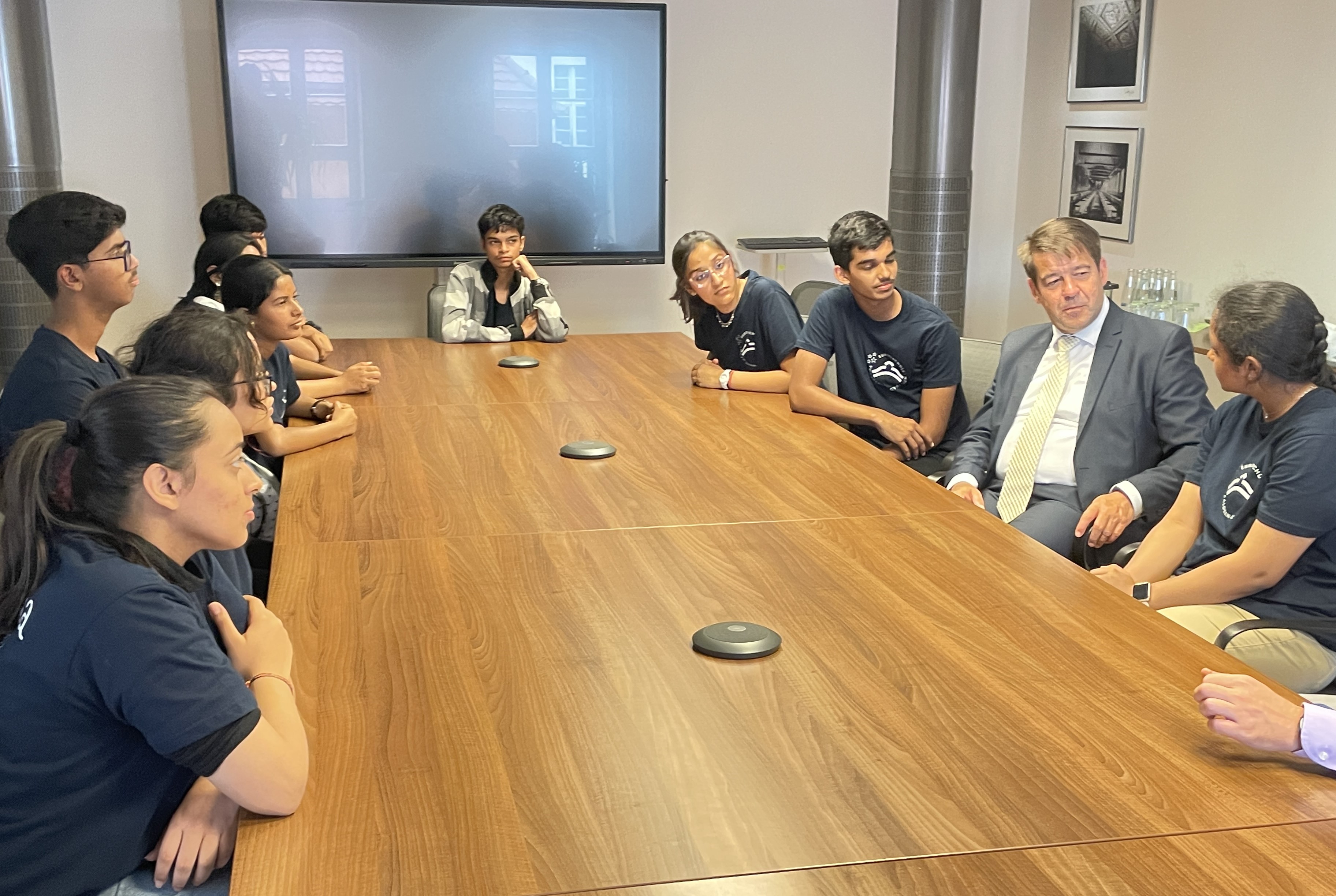 Betreut wird die Delegation von Johanne Webrink, Deutschlehrerin am von Saldern-Gymnasium. Die indischen Schüler waren auch bei den Feierlichkeiten zum 30-jährigen Bestehen des Gymnasiums im Ratssaal anwesend und gestalteten in der Galerie Sonnensegel eigene Taschen.