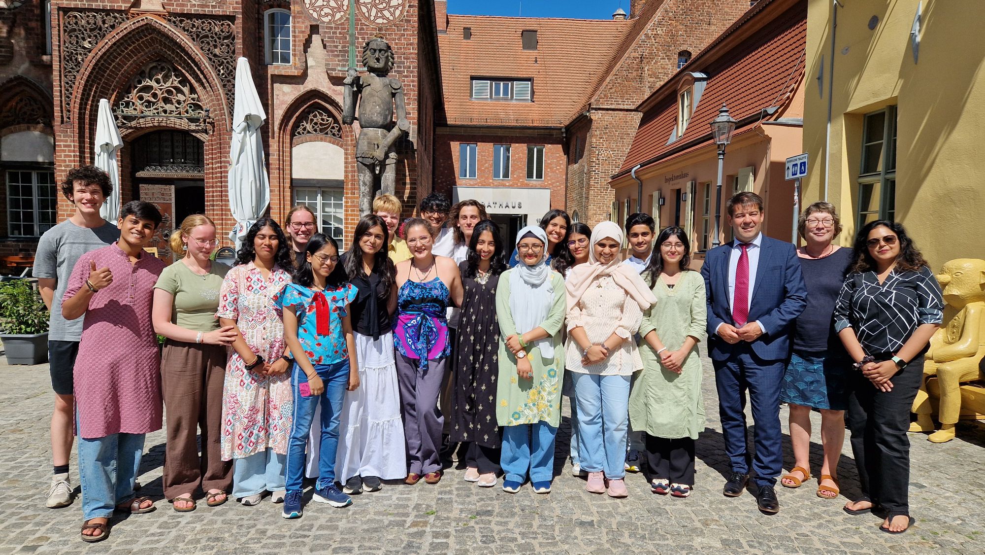 Im „von Saldern-Gymnasium Europaschule“ hat die Gastaufnahme Tradition – auch dank engagierter Lehrkräfte wie Johanne Webrink, die abermals – und letztmals (vor dem nahen Ruhestand) – als Projektleiterin agiert. Die Schülerinnen und Schüler aus vier Städten Indiens – darunter Mumbai und Neu Delhi – werden bis zum 10. Juli ein Teil davon sein, dann zwei Wochen das Leben in Brandenburg an der Havel erlebt haben, bevor es noch für vier Tage nach Berlin geht. Die 4-Millionen-Stadt kann vermutlich nur ansatzweise mit der 20-Millionen-Metropole Mumbai mithalten; weit größer ist der Brandenburger Kontrast. Hier leben die Inder in den Familien der von-Saldern-Schülerschaft, meist in Brandenburg an der Havel, aber auch in Plaue, Bensdorf oder Zitz. Als etwas beschwerlich befunden wird im Umland das frühe Aufstehen, um pünktlich 06:30 Uhr zur Schulanreise zu starten. Die Landschaft aber und der Freiraum zumeist bewundert und das Leben in den Gastfamilien wird als herzlich empfunden.