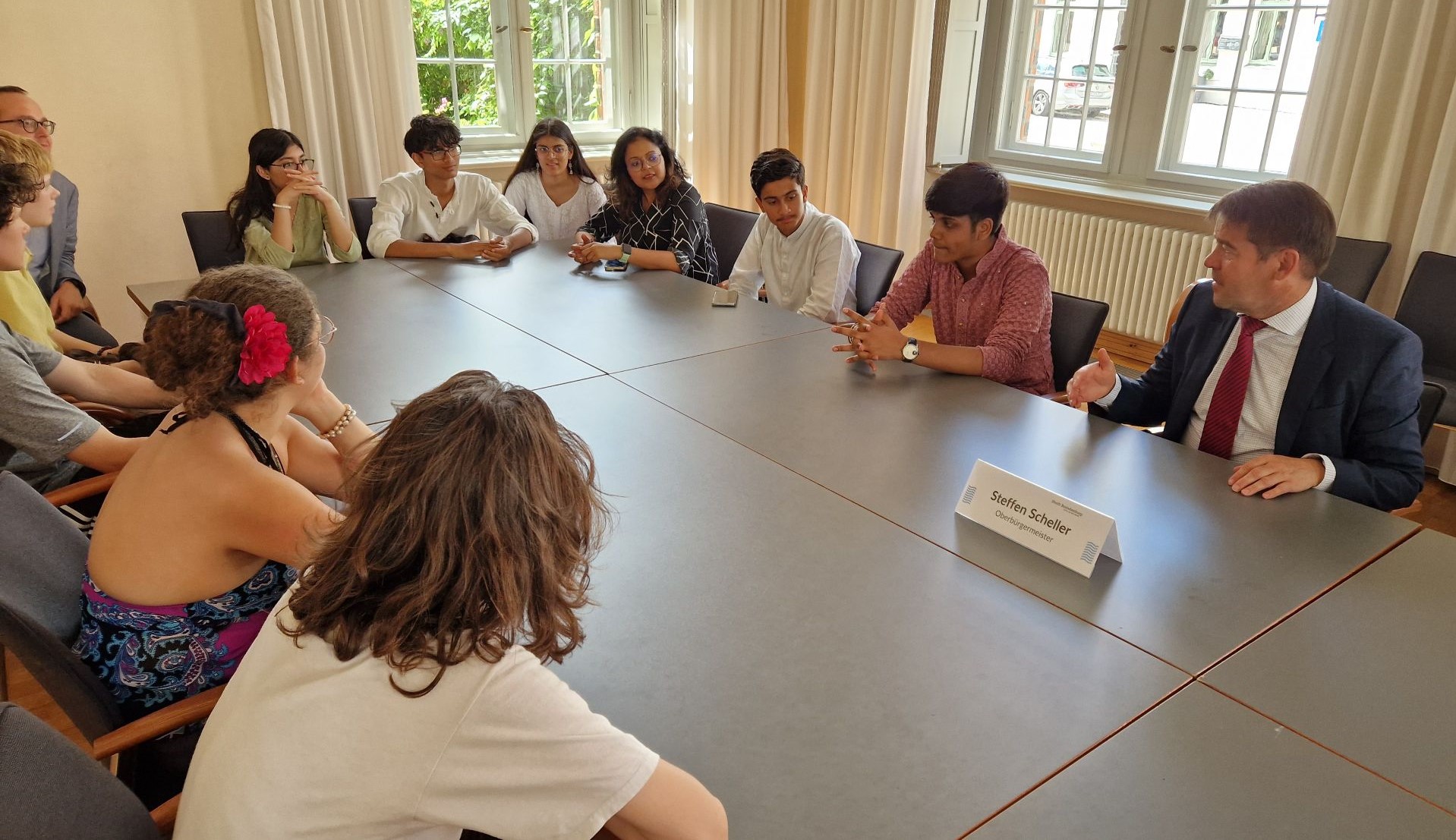 Auch Oberbürgermeister Steffen Scheller hieß die jungen Gäste aus Indien herzlich in der Stadt willkommen – und im Rathaus. Eine Stunde nahm er sich Zeit für Gespräche, erfuhr, dass indische Schulen bis zu 8.000 Schülerinnen und Schüler zählen können, dass bis Klasse 8 drei Sprachen gelernt werden und gelbe Schulbusse das gebräuchlichste Reisemittel sind. Gegessen wird morgens, mittags und abends warm – und gern scharf. Wie das indische Essen in Brandenburg an der Havel ist, wollen die indischen und deutschen Schülerinnen und Schüler gemeinsam in der „Malabar“ testen. Einige, die später in Deutschland studieren wollen, ziehen dafür auch Brandenburg an der Havel in Betracht, was der Stadtchef wohlwollend zur Kenntnis nahm, derweilen auch er bereitwillig alle Fragen beantwortete. Ob er schon immer Oberbürgermeister werden wollte, welche Voraussetzungen man für den Job braucht, wie eine Wahl in Deutschland abläuft und warum es in der Stadt so viele Baustellen gibt…