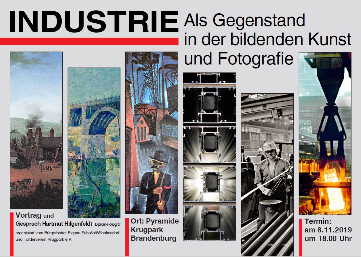 Am Freitag, dem 08.11.2019, 18:00 Uhr, lädt der Bürgerbeirat Eigene Scholle/Wilhelmsdorf in Zusammenarbeit mit dem Förderverein Krugpark e. V., in die Umweltpyramide des Naturschutzzentrums Krugpark Brandenburg, Wilhelmsdorf 6 P, ein. Hartmut Hilgenfeldt zeigt seinen Bildvortrag über „Industrie – als Gegenstand der bildenden Kunst und der Fotografie“ und möchte anschließend mit den Besucherinnen und Besuchern über das Thema ins Gespräch kommen.