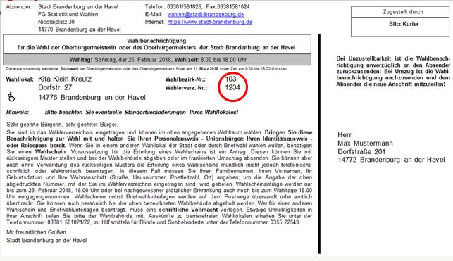 Daher erhalten die Wähler in den Wahllokalen am 25. Februar 2018 ihre Wahlbenachrichtigungskarte nach ihrer Stimmabgabe zurück. Diese soll dann bei einer eventuell stattfindenden Stichwahl dem Wahlvorstand wieder vorgelegt werden.